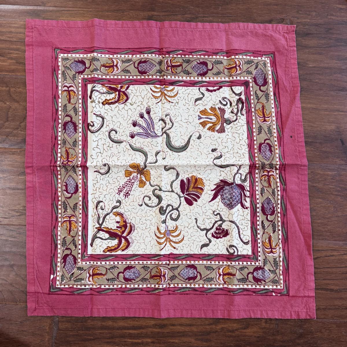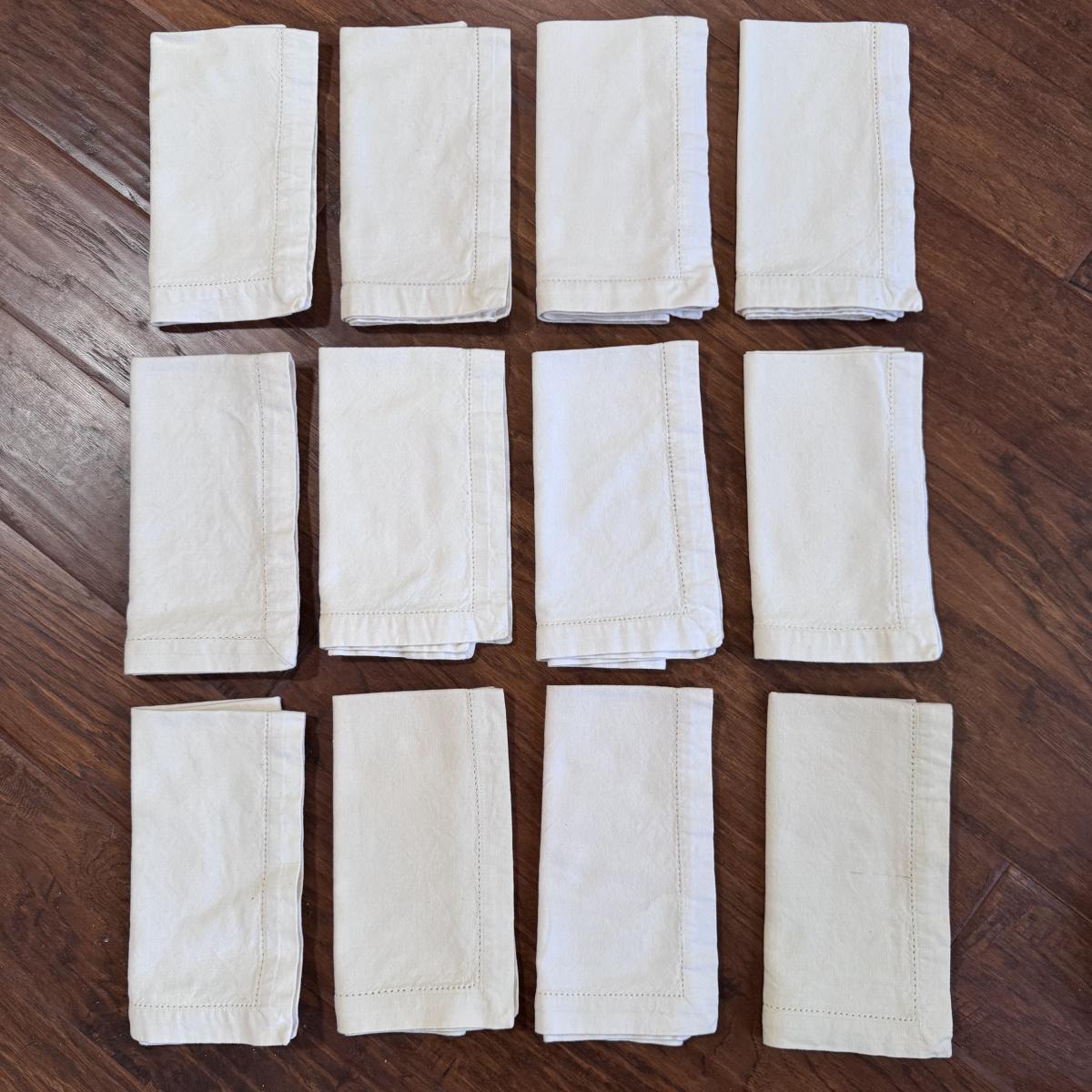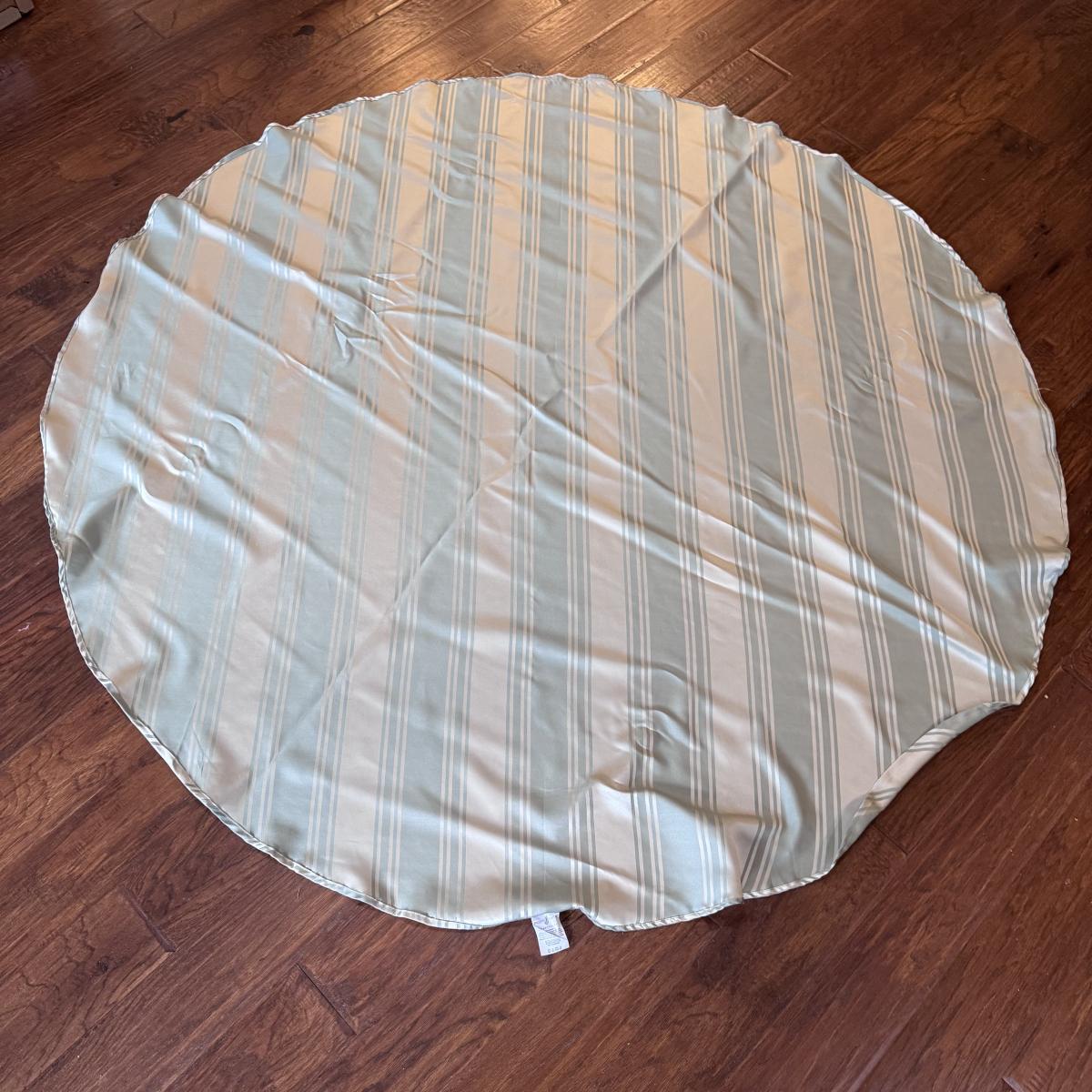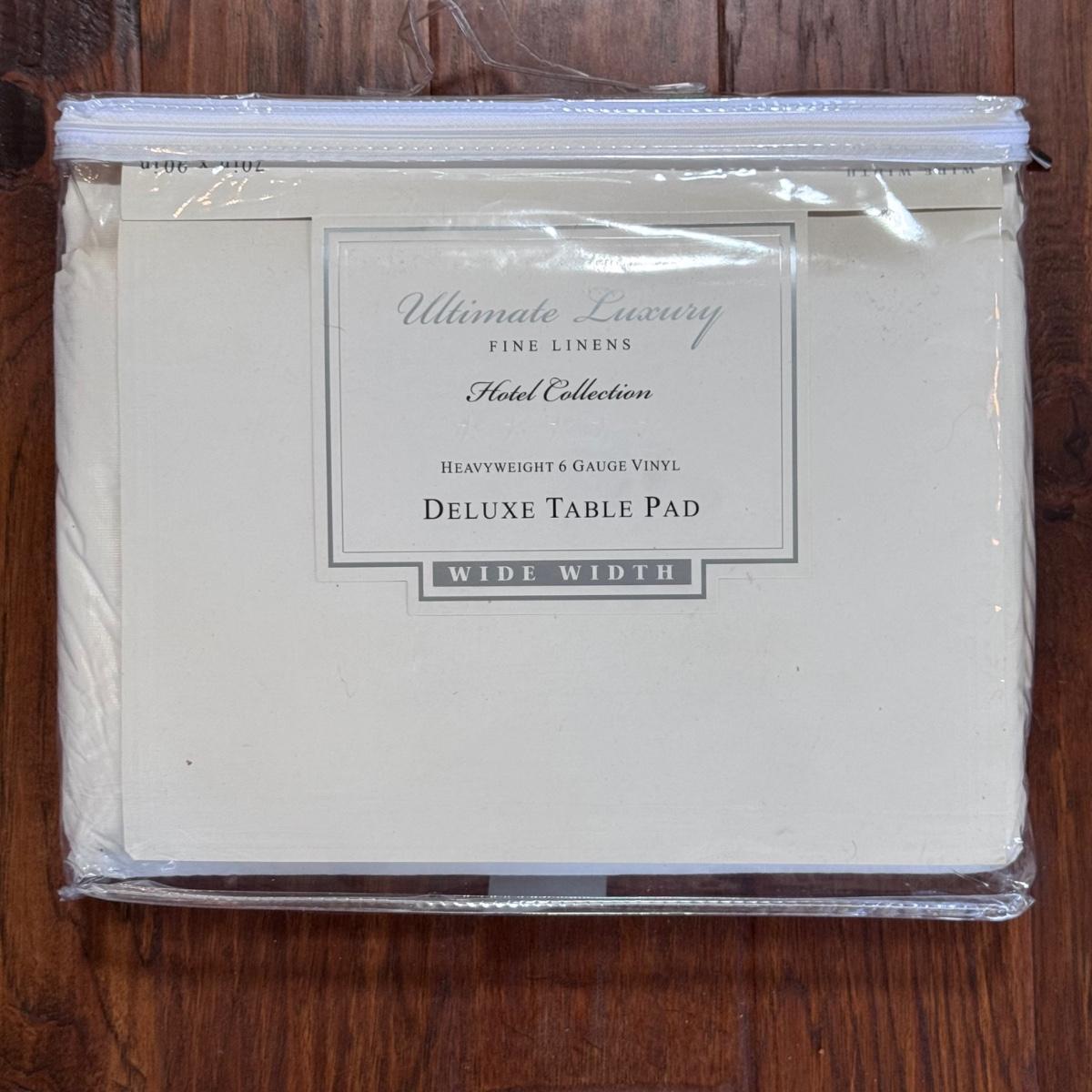 This lot includes six dark green circular placemats, nine light green circular placemats, four World Market placemats, several linens from Couleur Nature, a deluxe table pad by Ultimate Luxury Fine Linens, and more. See pictures for all items in this lot. The light green circular placemats have a stain on one of them - see picture included. The seat cushions individually measure 15” x 13”H. The table pad measures 90” x 70”H. Shipping available.