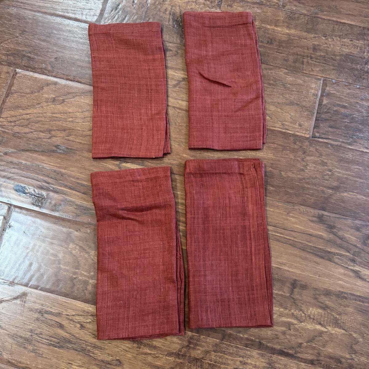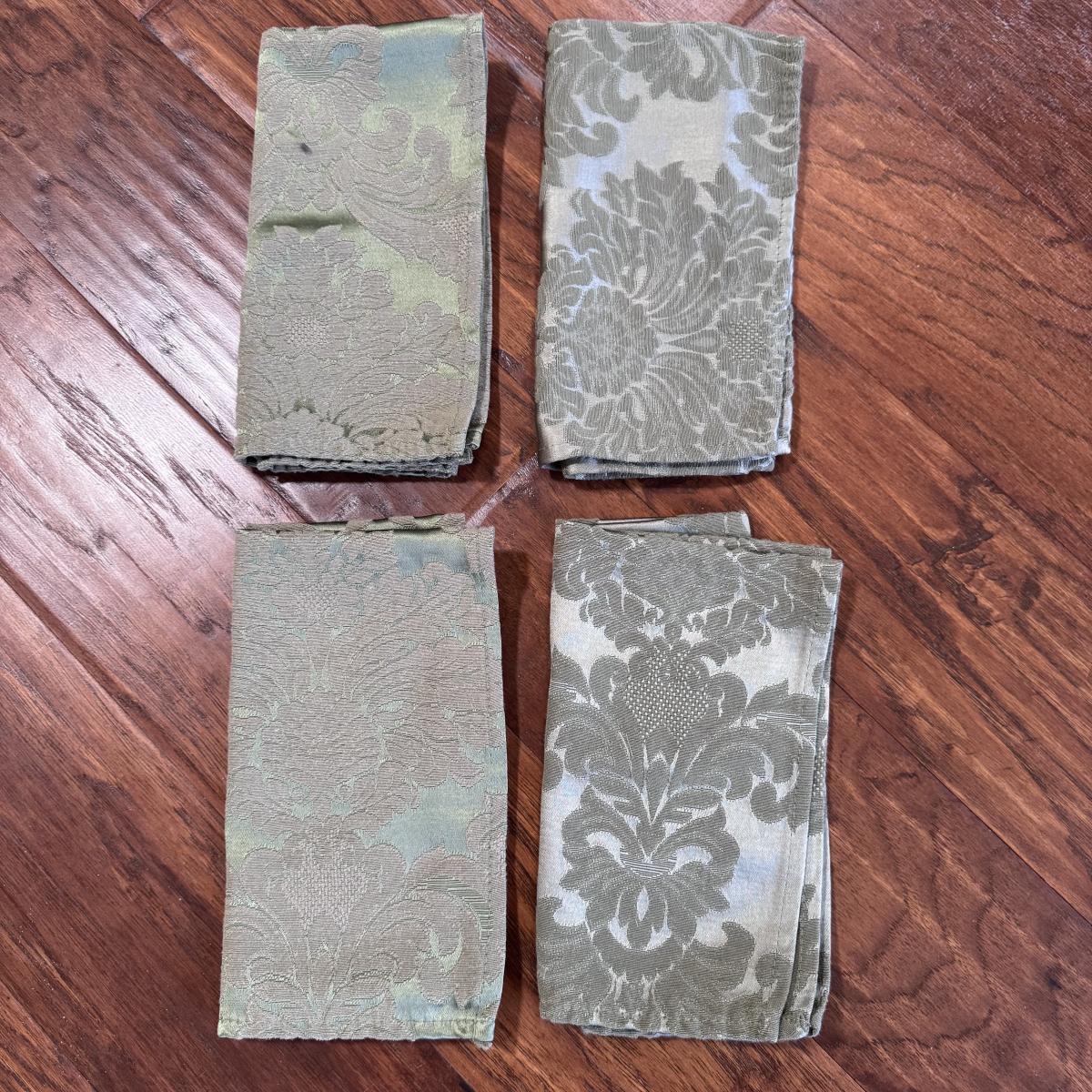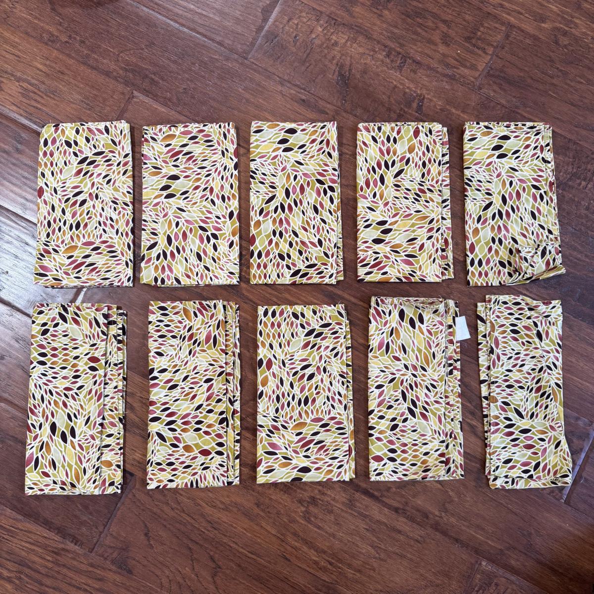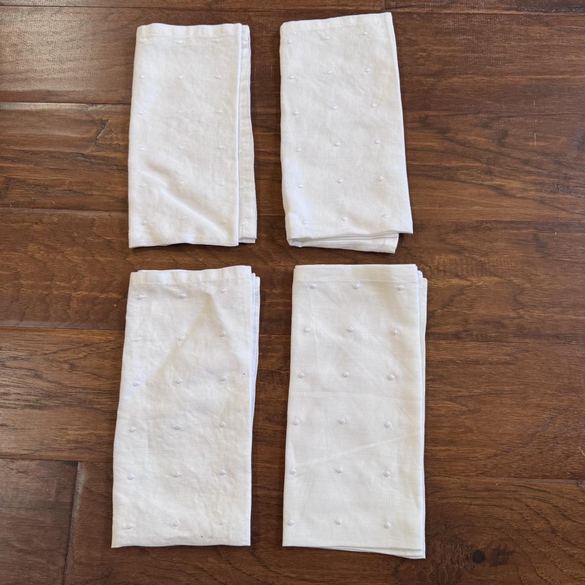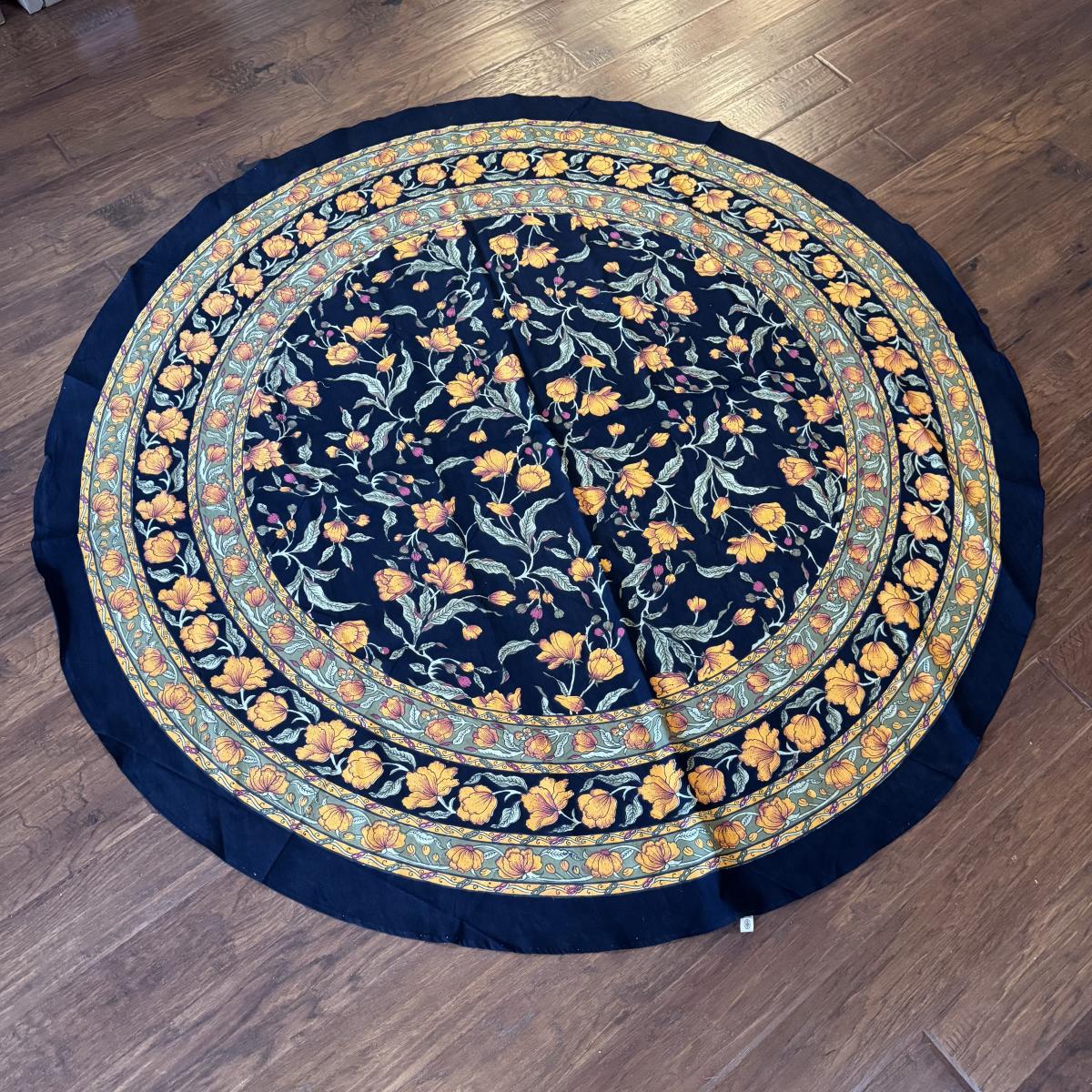 This lot includes six dark green circular placemats, nine light green circular placemats, four World Market placemats, several linens from Couleur Nature, a deluxe table pad by Ultimate Luxury Fine Linens, and more. See pictures for all items in this lot. The light green circular placemats have a stain on one of them - see picture included. The seat cushions individually measure 15” x 13”H. The table pad measures 90” x 70”H. Shipping available.