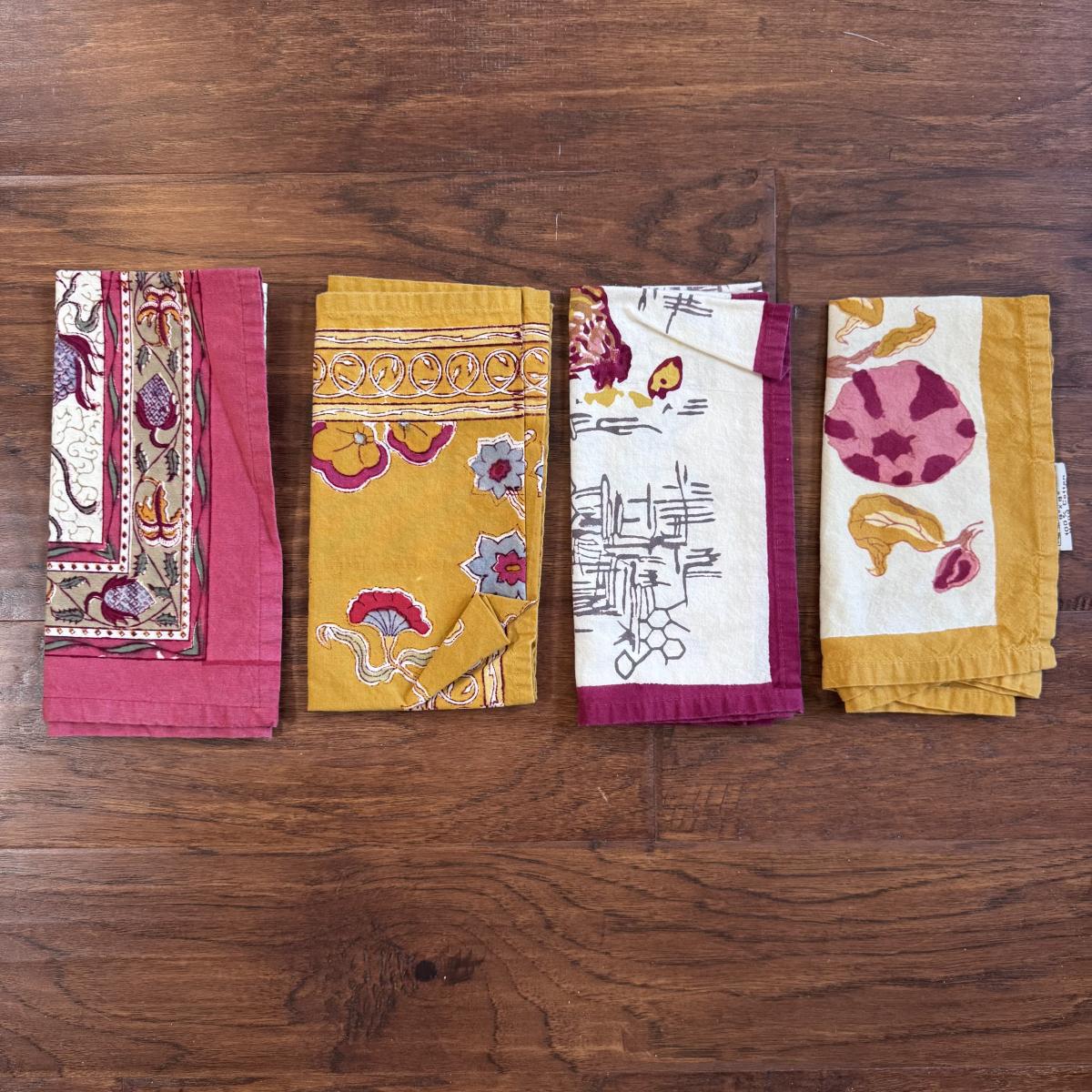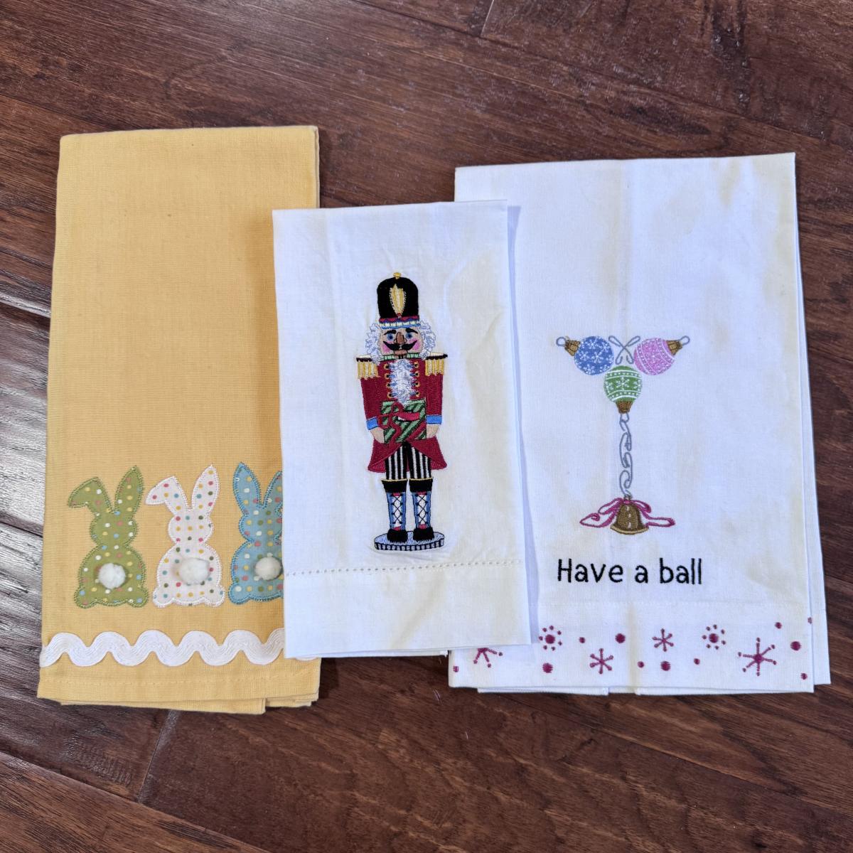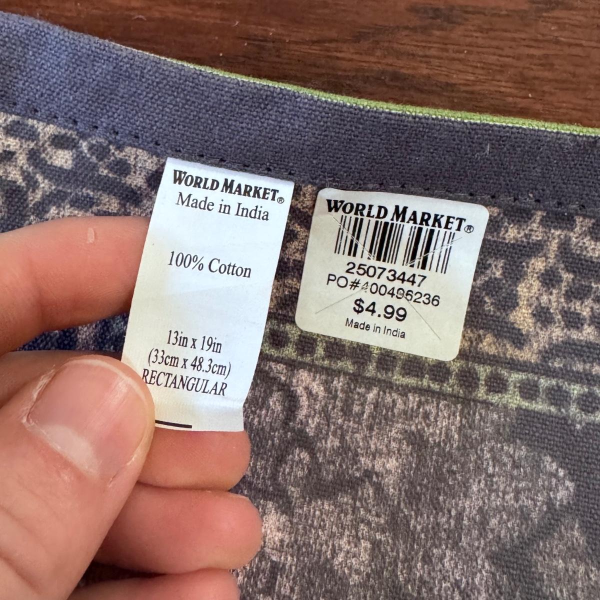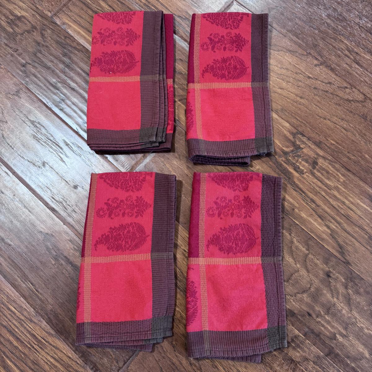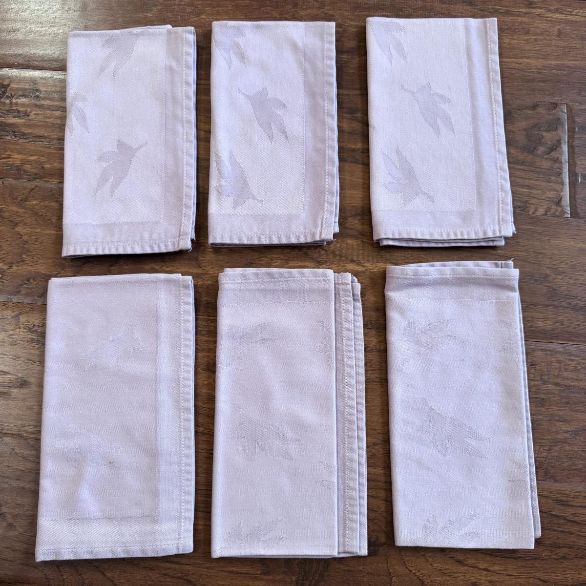 This lot includes six dark green circular placemats, nine light green circular placemats, four World Market placemats, several linens from Couleur Nature, a deluxe table pad by Ultimate Luxury Fine Linens, and more. See pictures for all items in this lot. The light green circular placemats have a stain on one of them - see picture included. The seat cushions individually measure 15” x 13”H. The table pad measures 90” x 70”H. Shipping available.