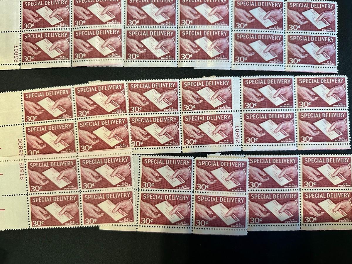 (count of 88) 1957 Special Delivery 30c Sc E21 MNH 32 matched plate blocks CMS complete