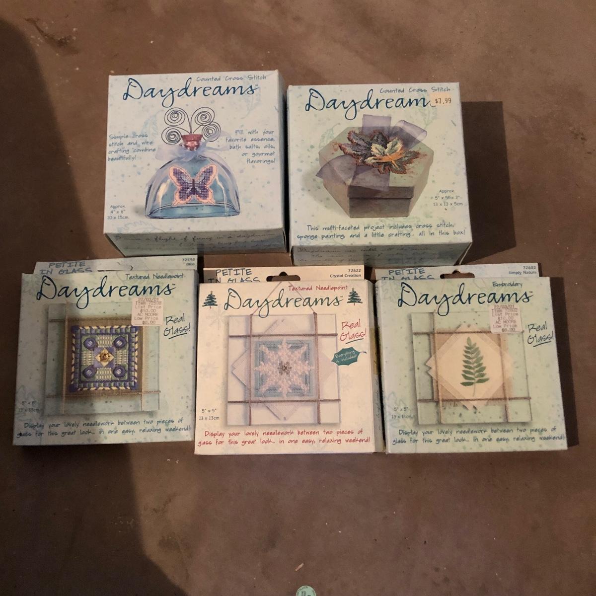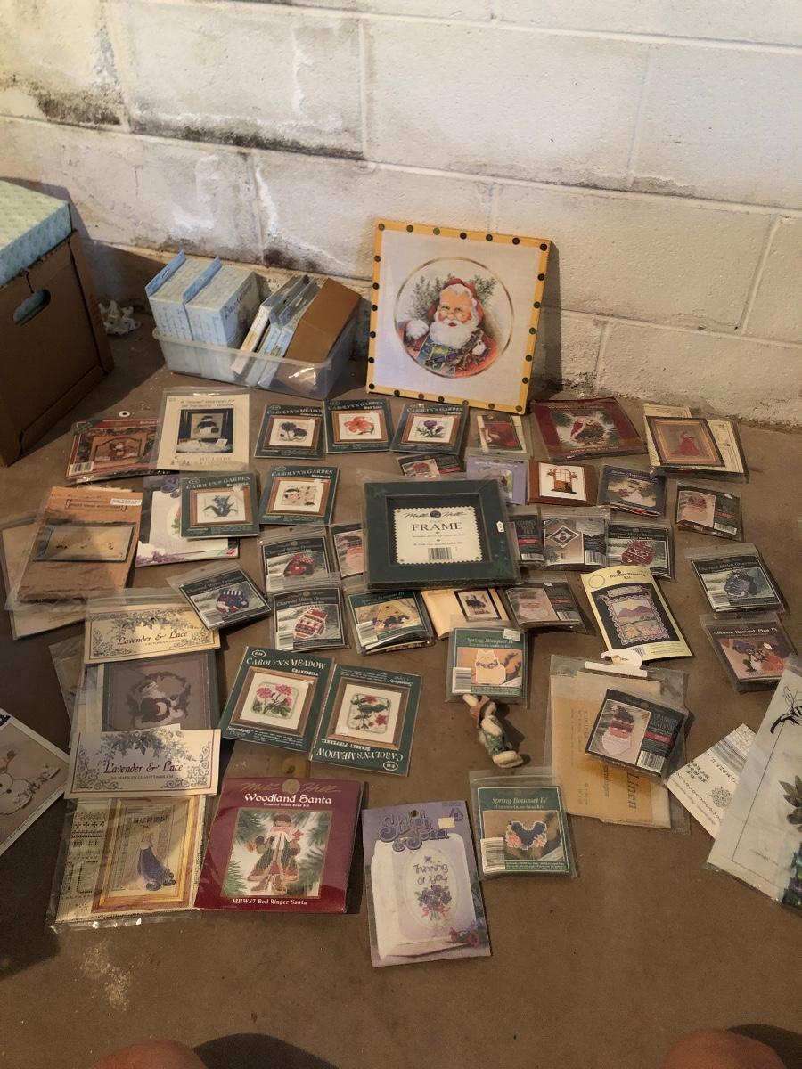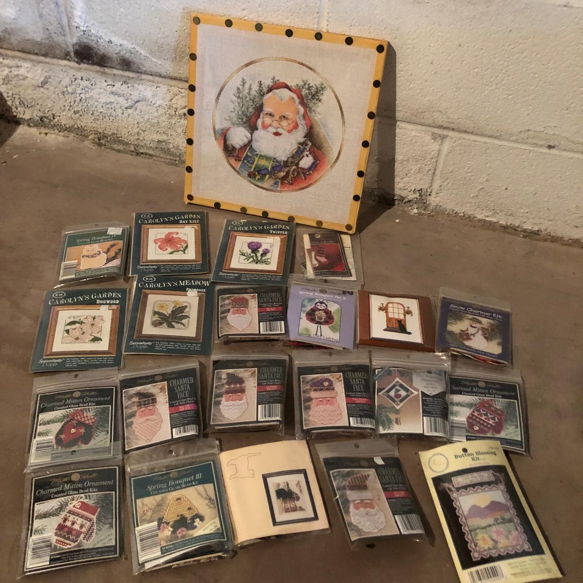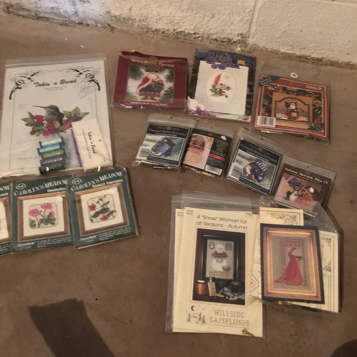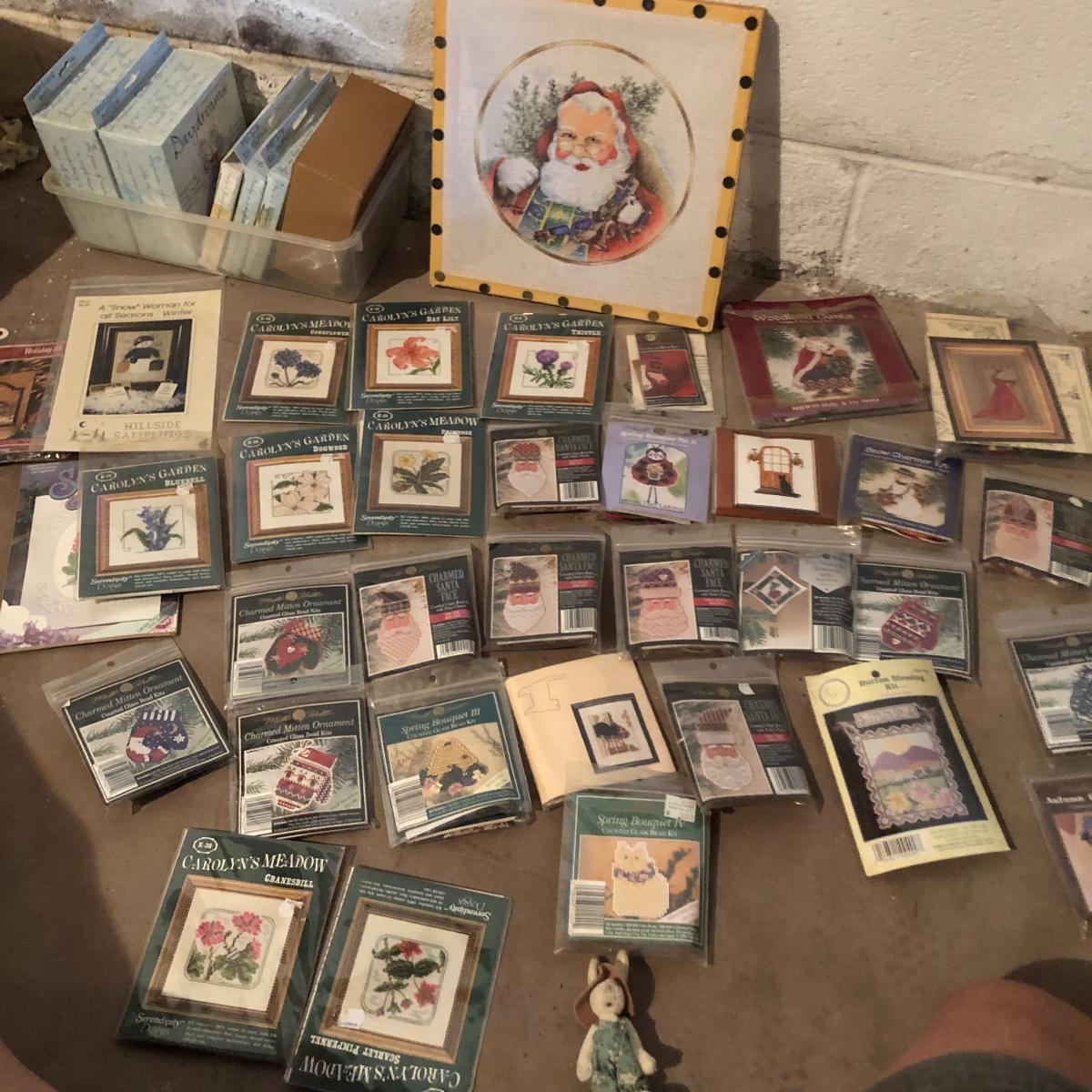 Lot contains a large assortment of Mill Hill counted glass bead kits, Carolyn’s Garden embroidery kits, Daydreams needlepoint kits and more.