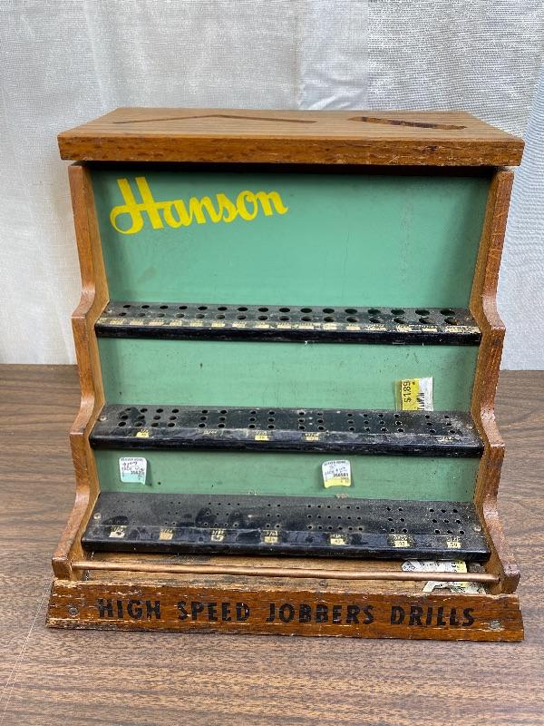 Lot# 001 s Counter Display HANSON High Speed Steel Drill Box Display Oak
