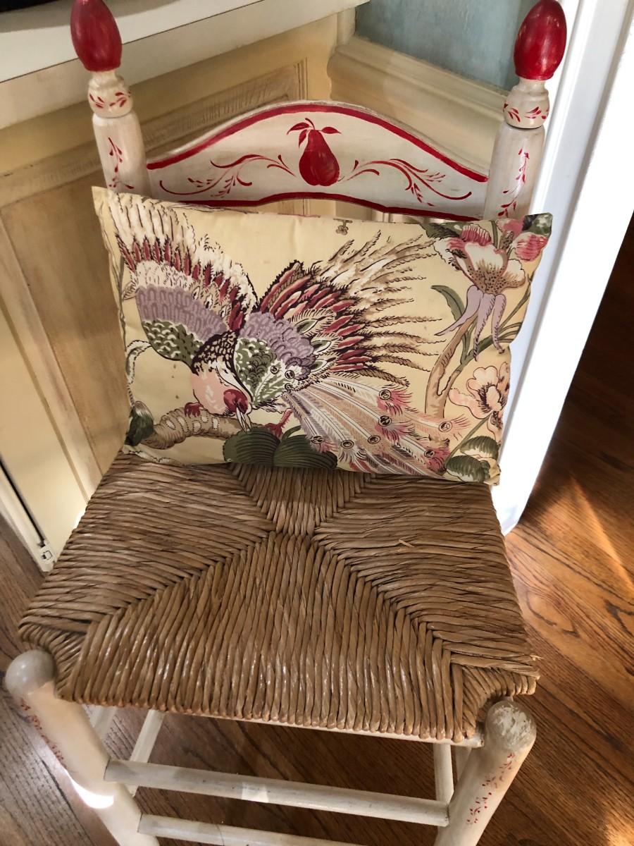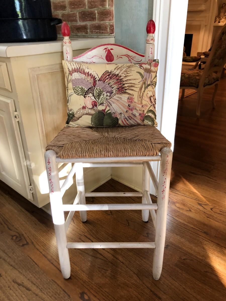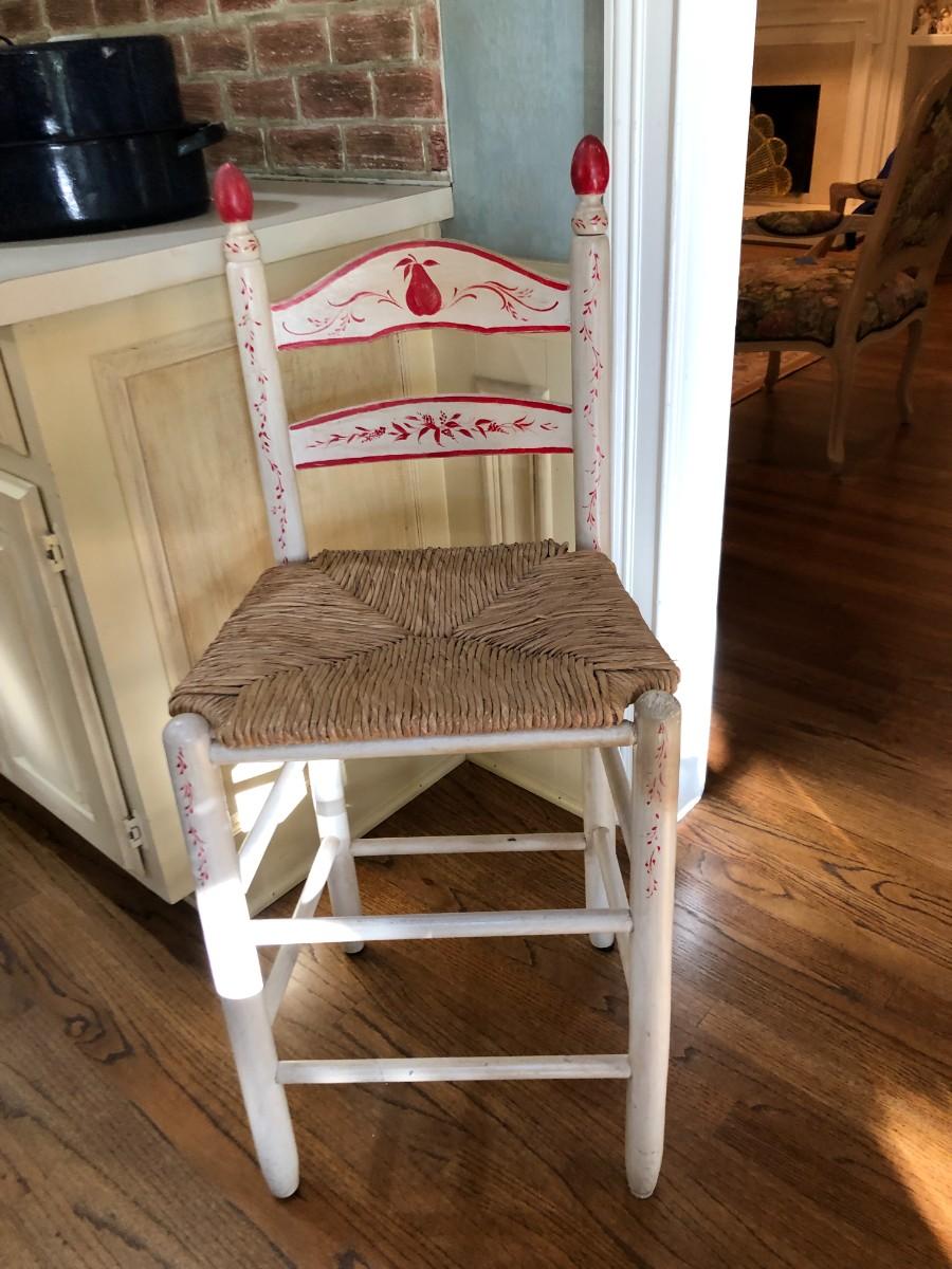 Bar stool has wicker/cane seat and measures 15"W x 15"D x 39 1/2"H, seat height is 24"