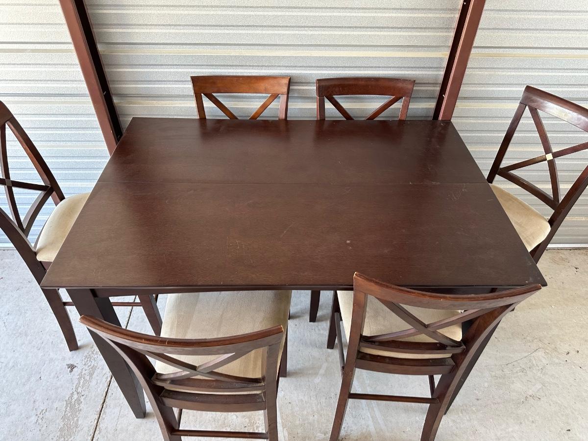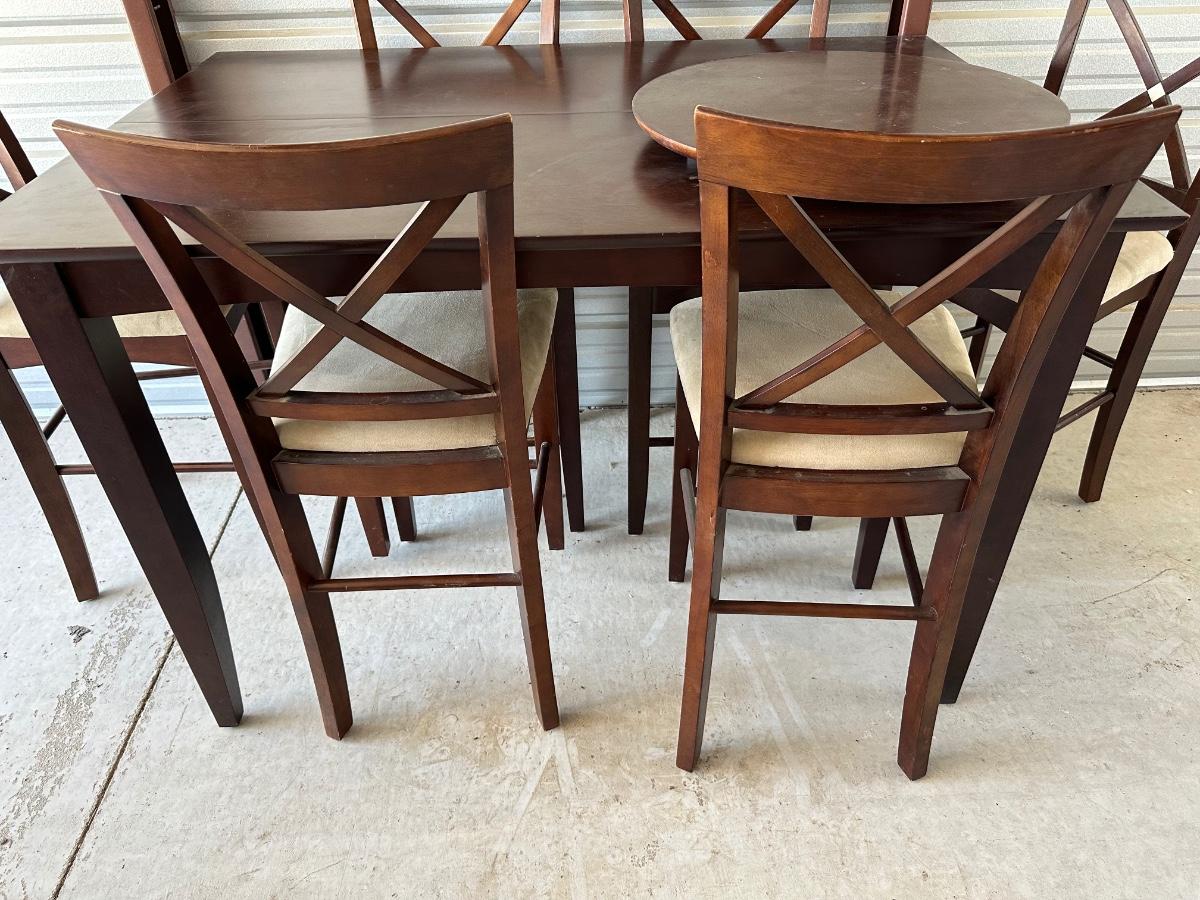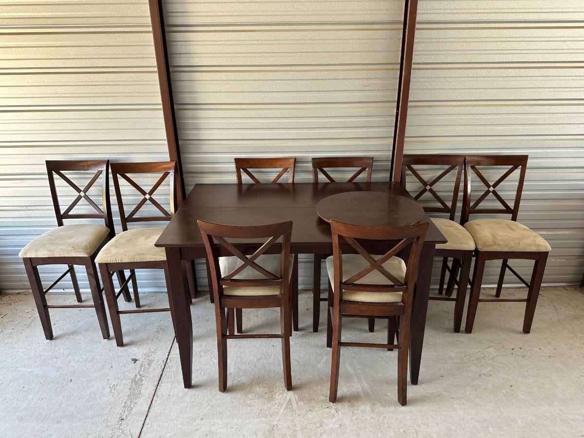 COUNTER HEIGHT DINING TABLE W/BUTTERFLY LEAF AND 8 CHAIRS PLUS A REMOVABLE LAZY SUSAN