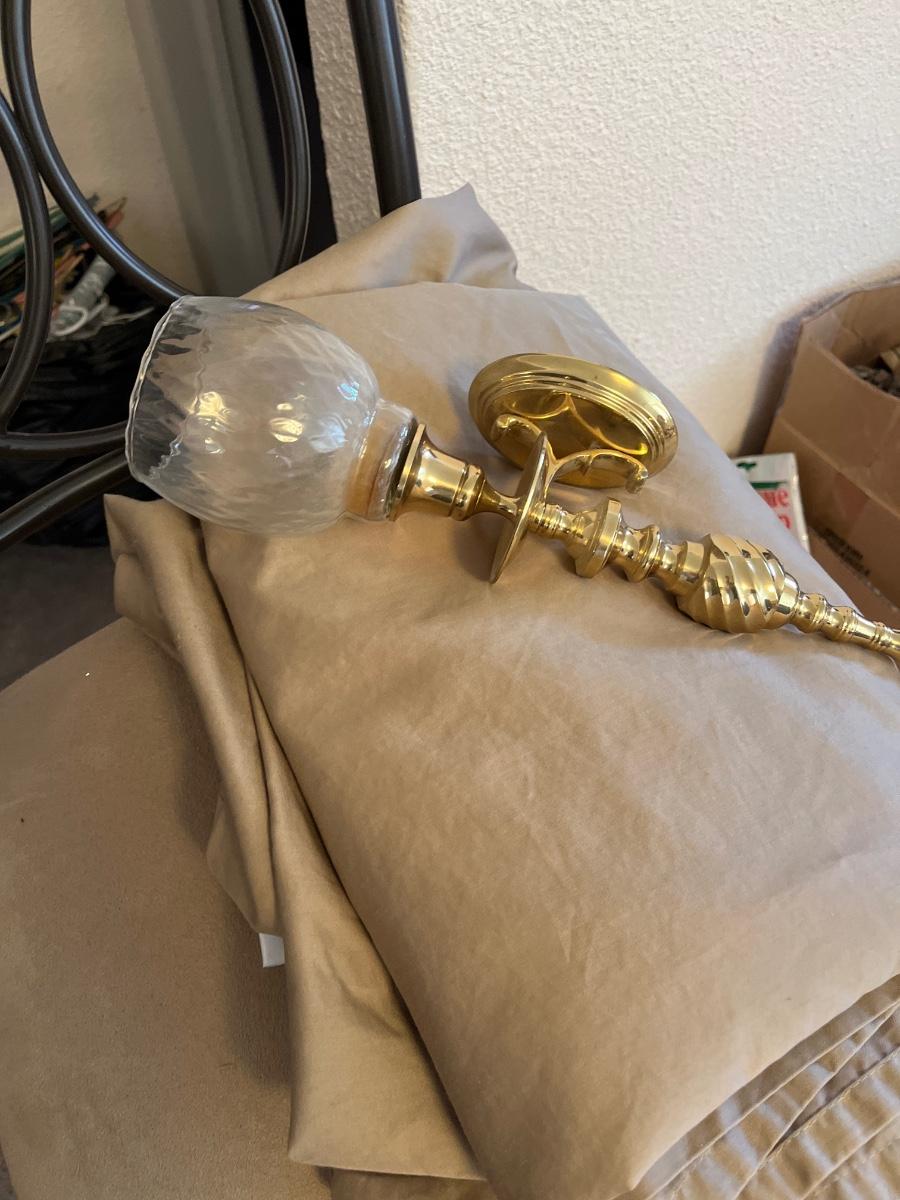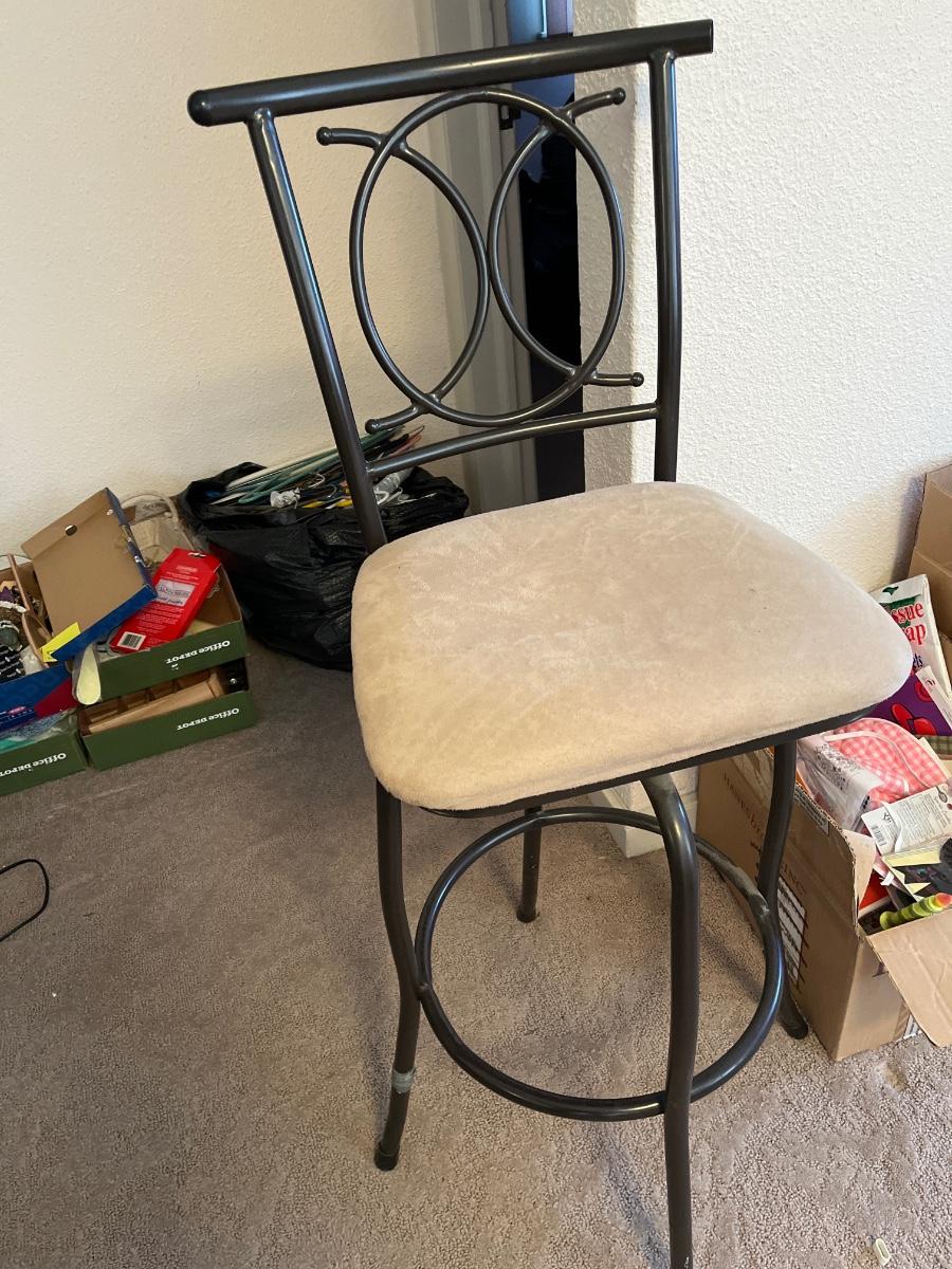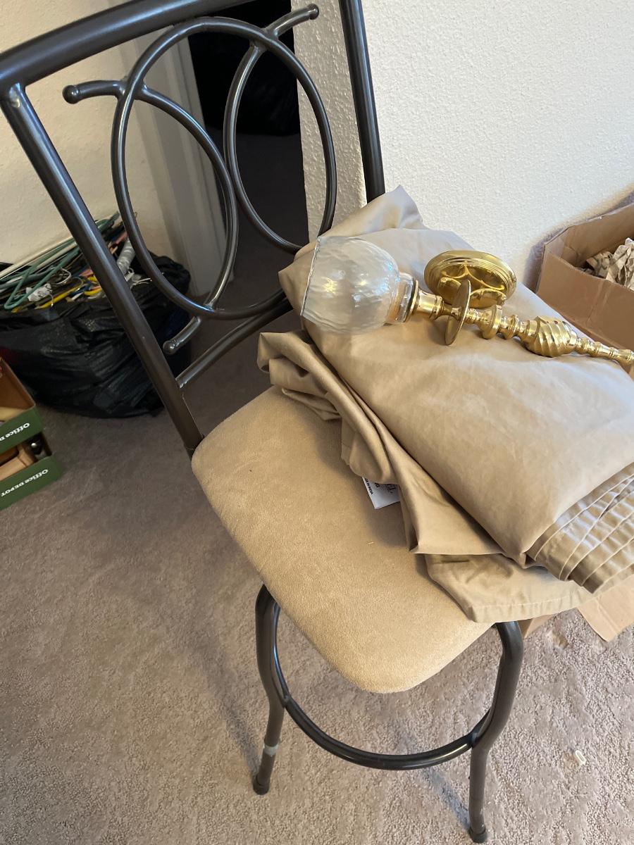 Counter stool, sconce and king bed sheet