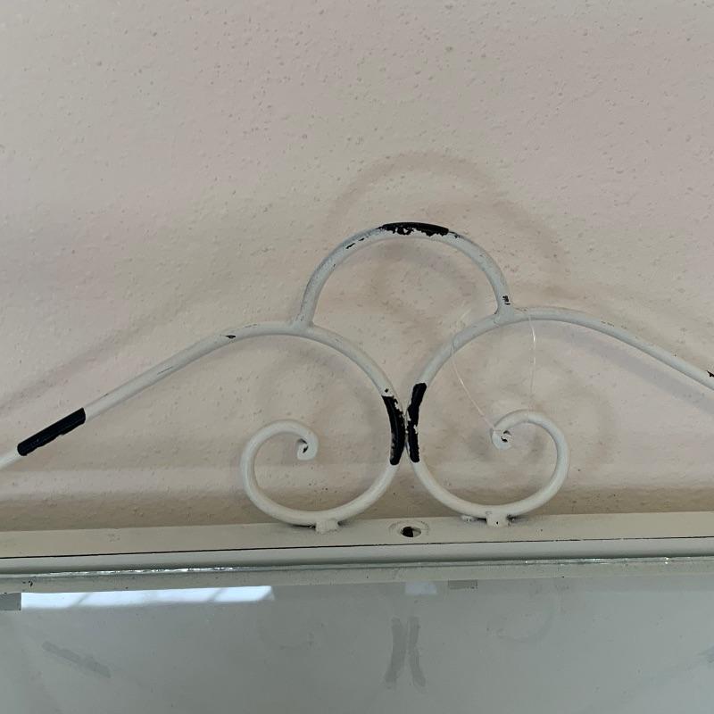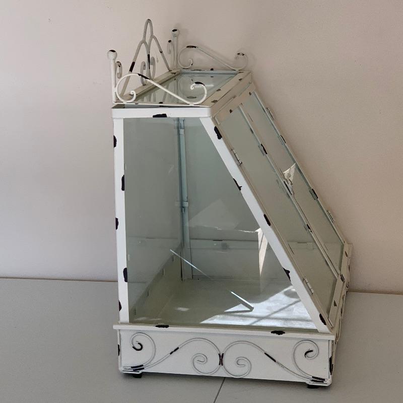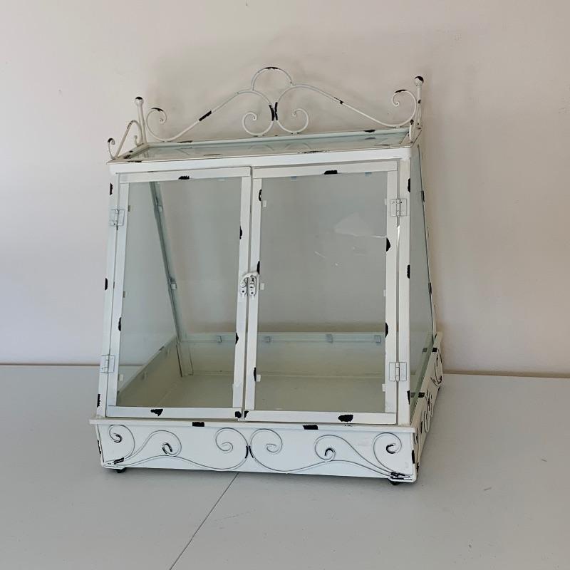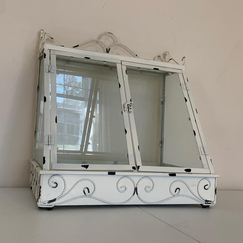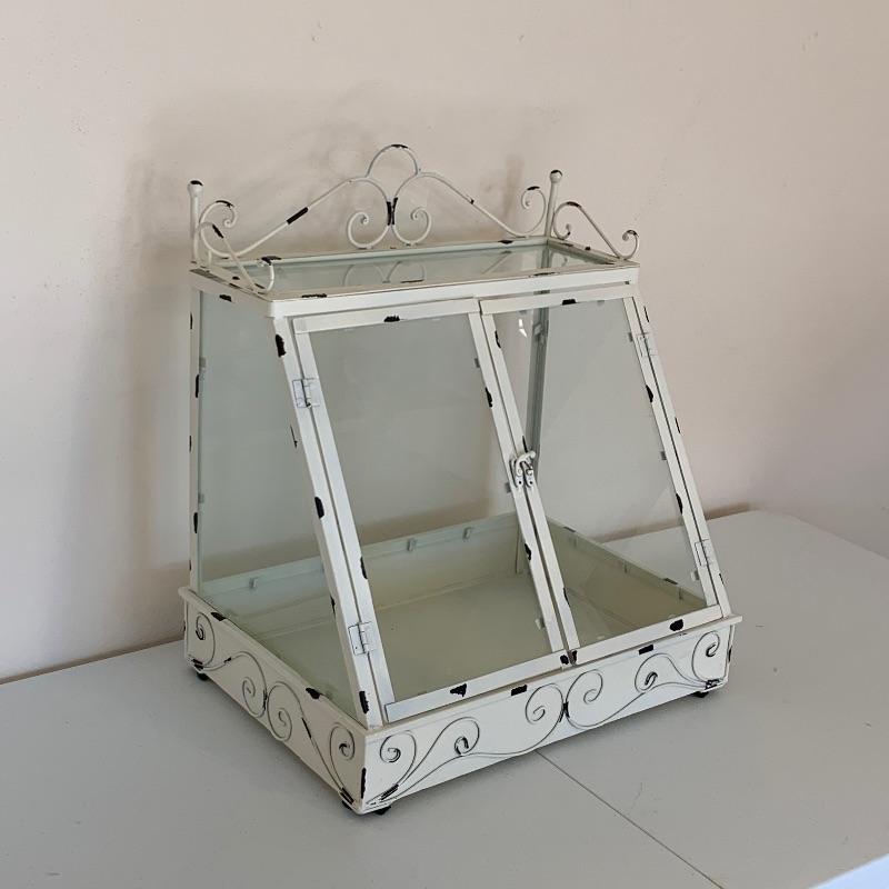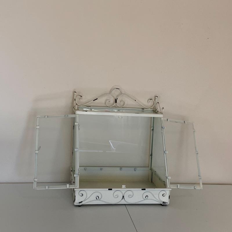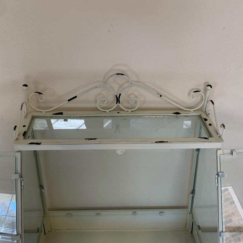 Counter Top White Distressed Metal Armoire with Glass Doors