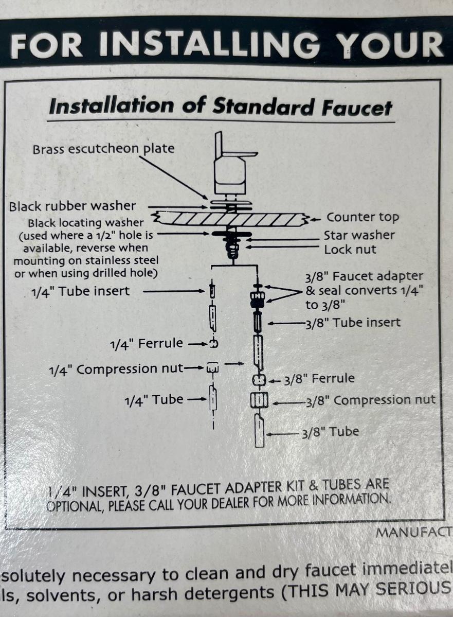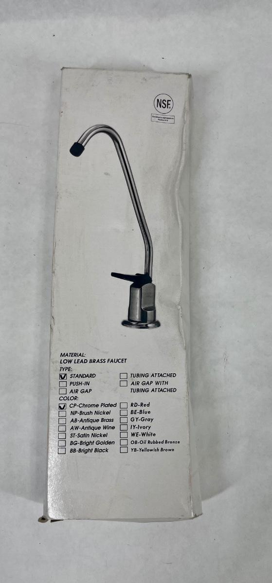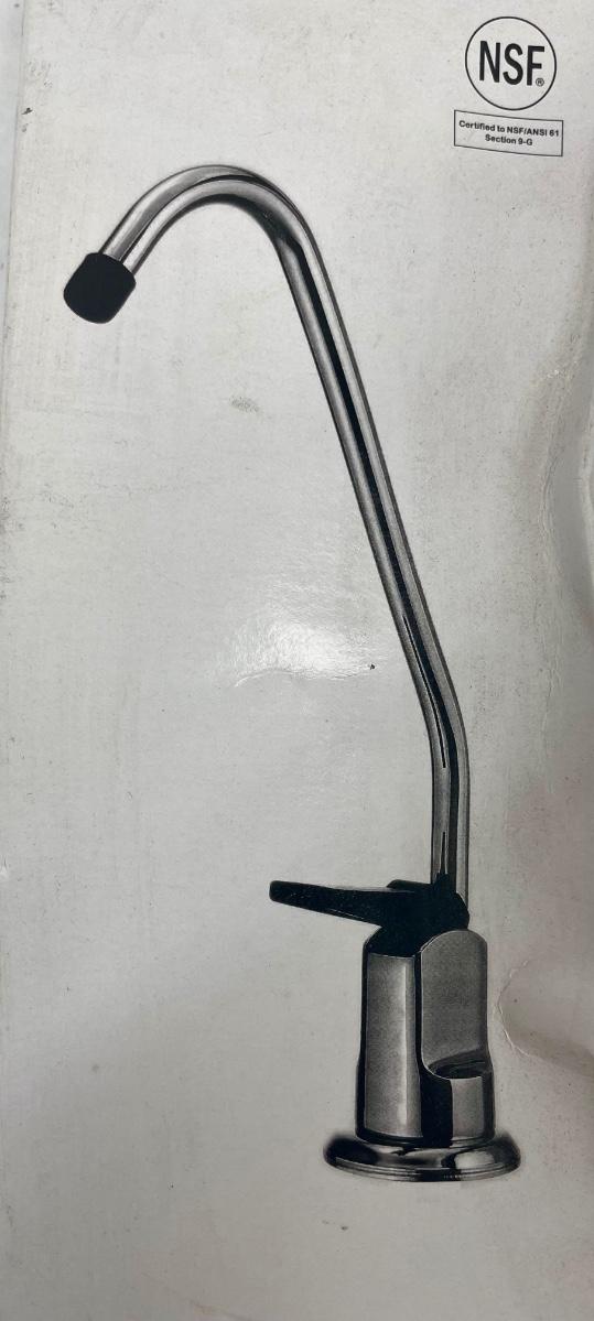 Chrome plated single lever water faucet for countertop mounting. Can be used for filtered water systems.