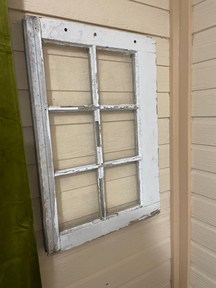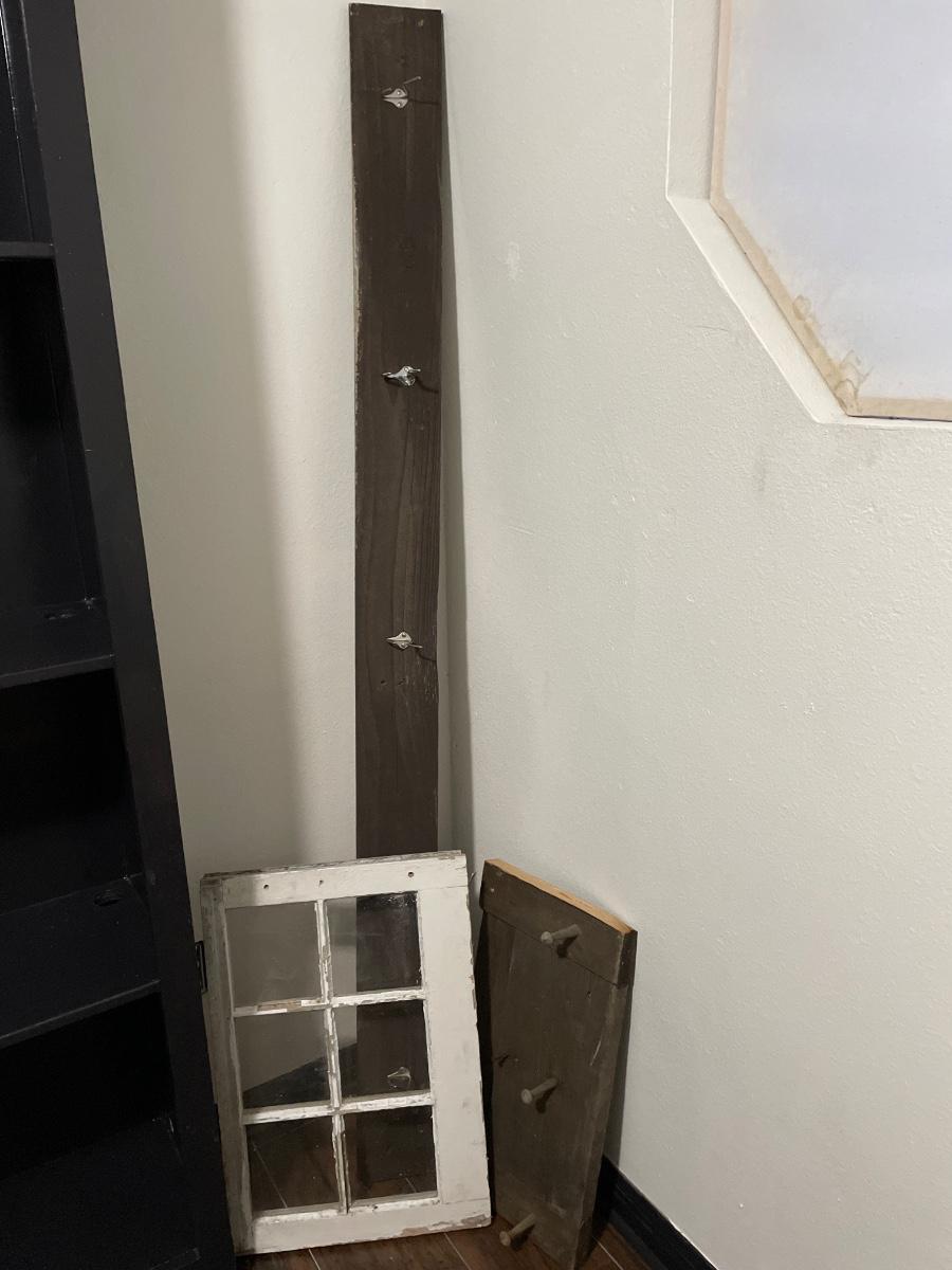 Vintage window, peg hanger and reclaimed wood rack