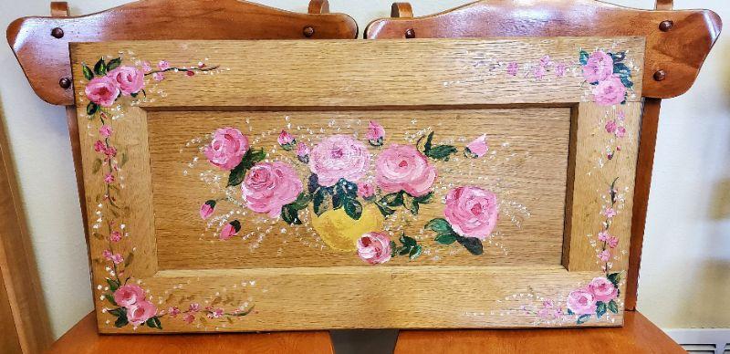 Country Folk Craft Rose Painted Wood Board. On overall good shape. Please see photos for more detail in help accessing condition.