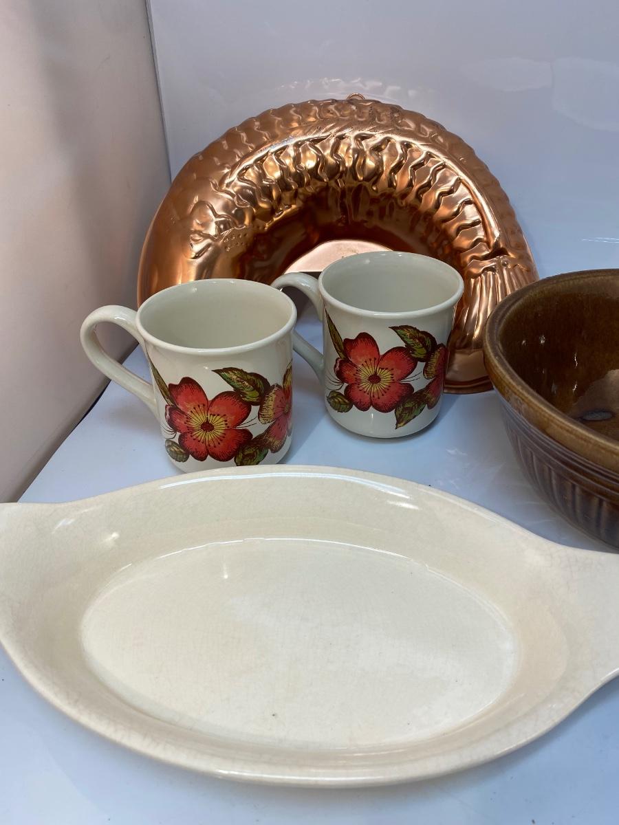 Country Kitchen Ceramics & Decor Lot. Everything included. No chips, may have light crazing. Copper mold has some scratches along the front.