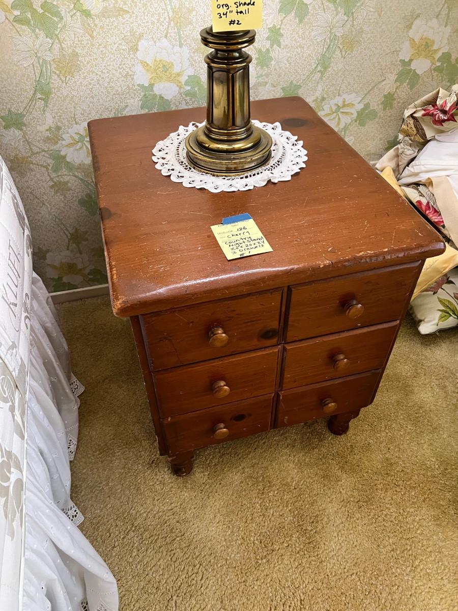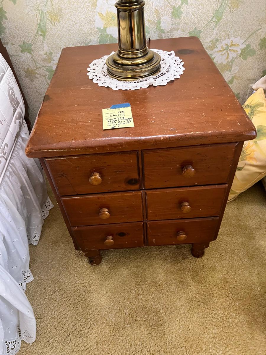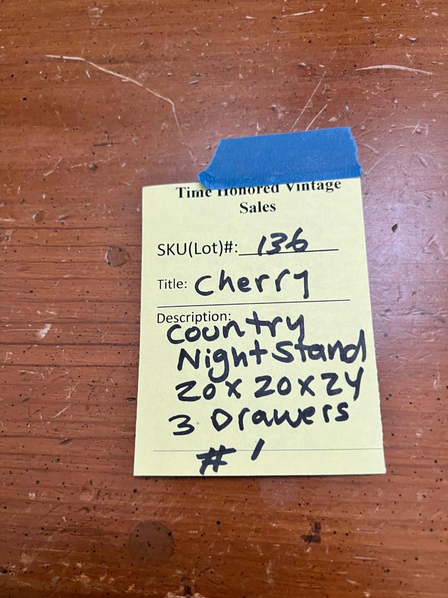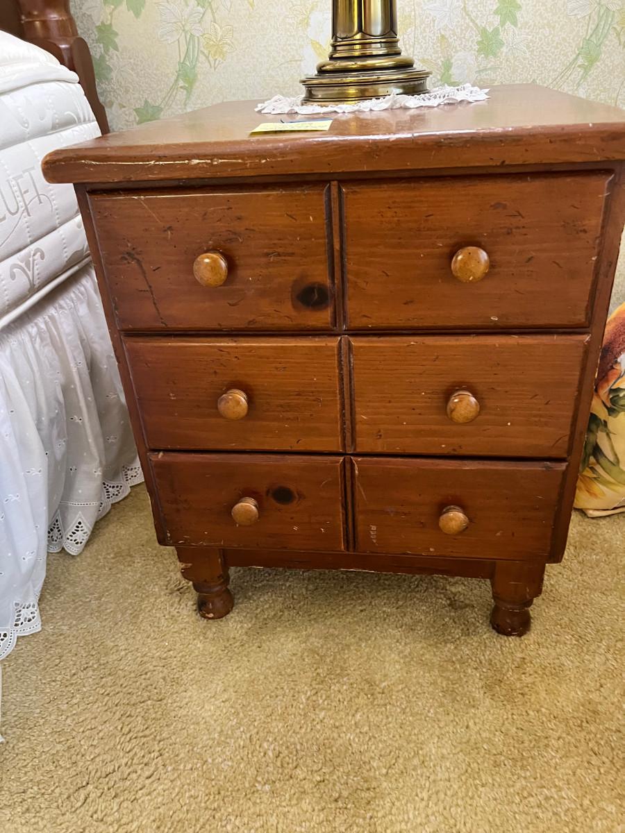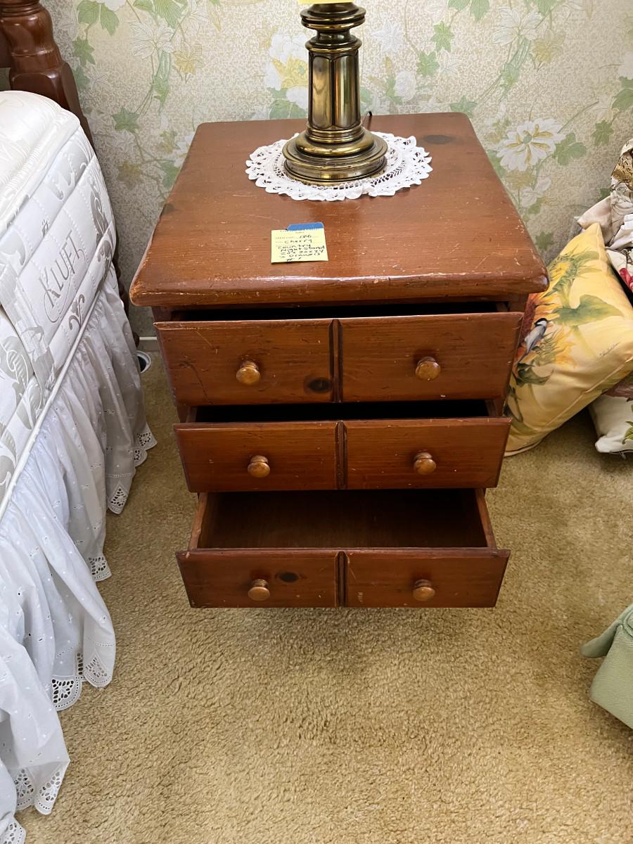 Country Night Stand #1 Cherry Wood 3 Drawer 20 X 20 X 24" Some wear to top, very sturdy , 2 available.