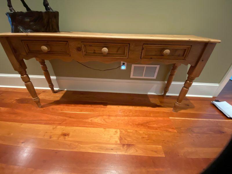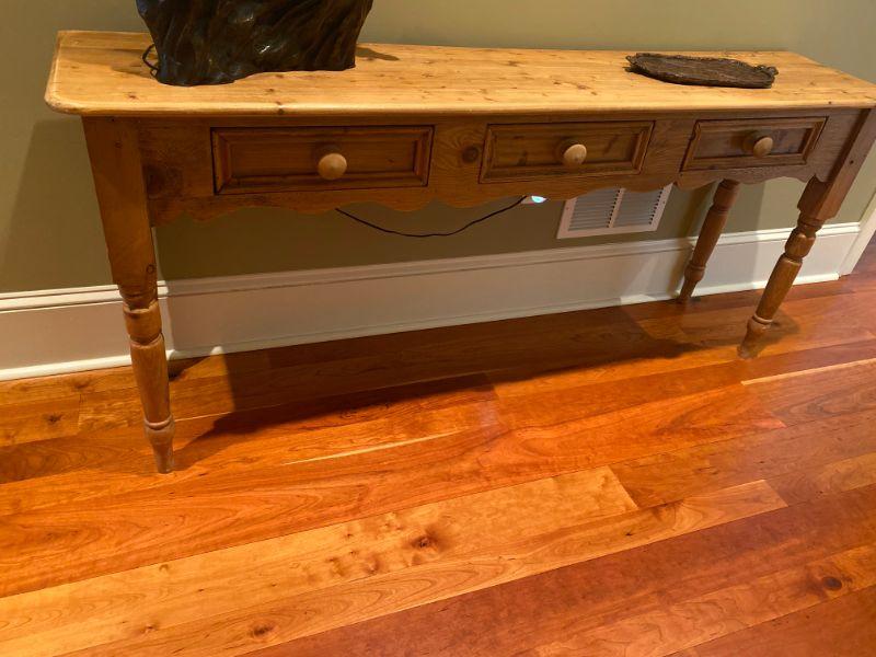 Lot #442 Country Pine Three Drawer Console Table