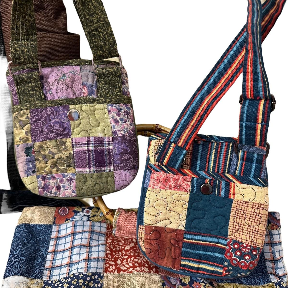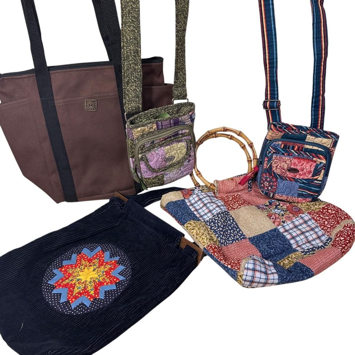 Country Quilted Patterns +The Perfect Pocketbook Handbag Lot of 5- all in very good condition (except the inside of the patchwork one has spots, but cool handles!)