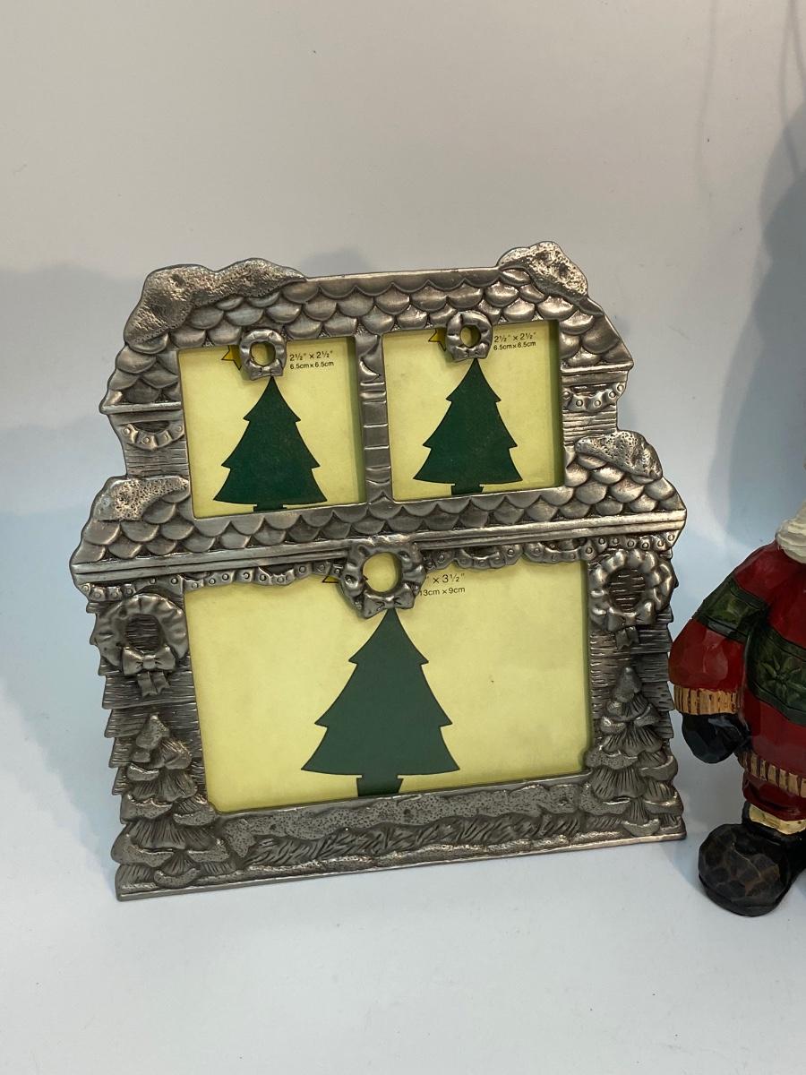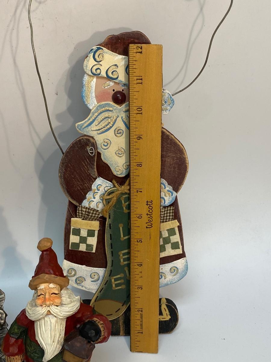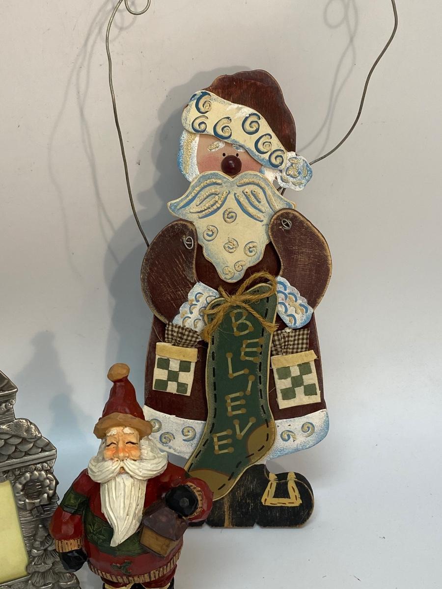 Country Rustic Christmas Seasonal Holiday Home Decor Santa Claus Picture Frame. All pieces are in good condition. The short Santa figurine looks like Jim Shore but no branding on it.