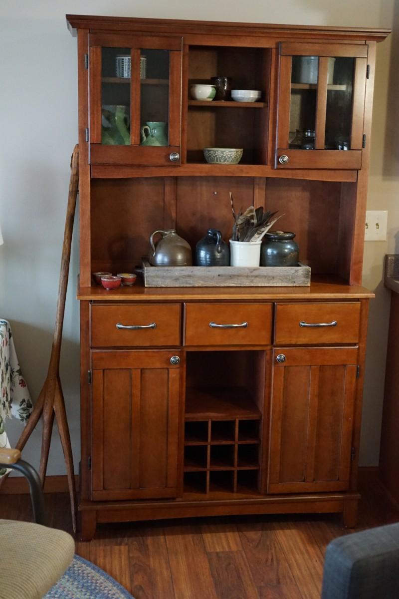 a nice complimentary cabinet to hold your favorite wine. Storage for glasses and items needed for the wine tasting party. wood with a cherry-colored stain* contents being sold separately. not included