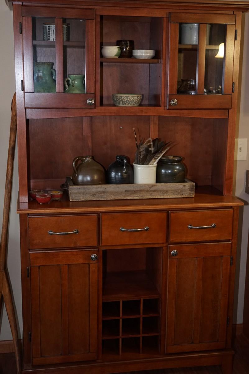 COUNTRY STYLE COMPLIMENTARY WINE CABINET SHELVES, DRAWERS, CENTER SHELF