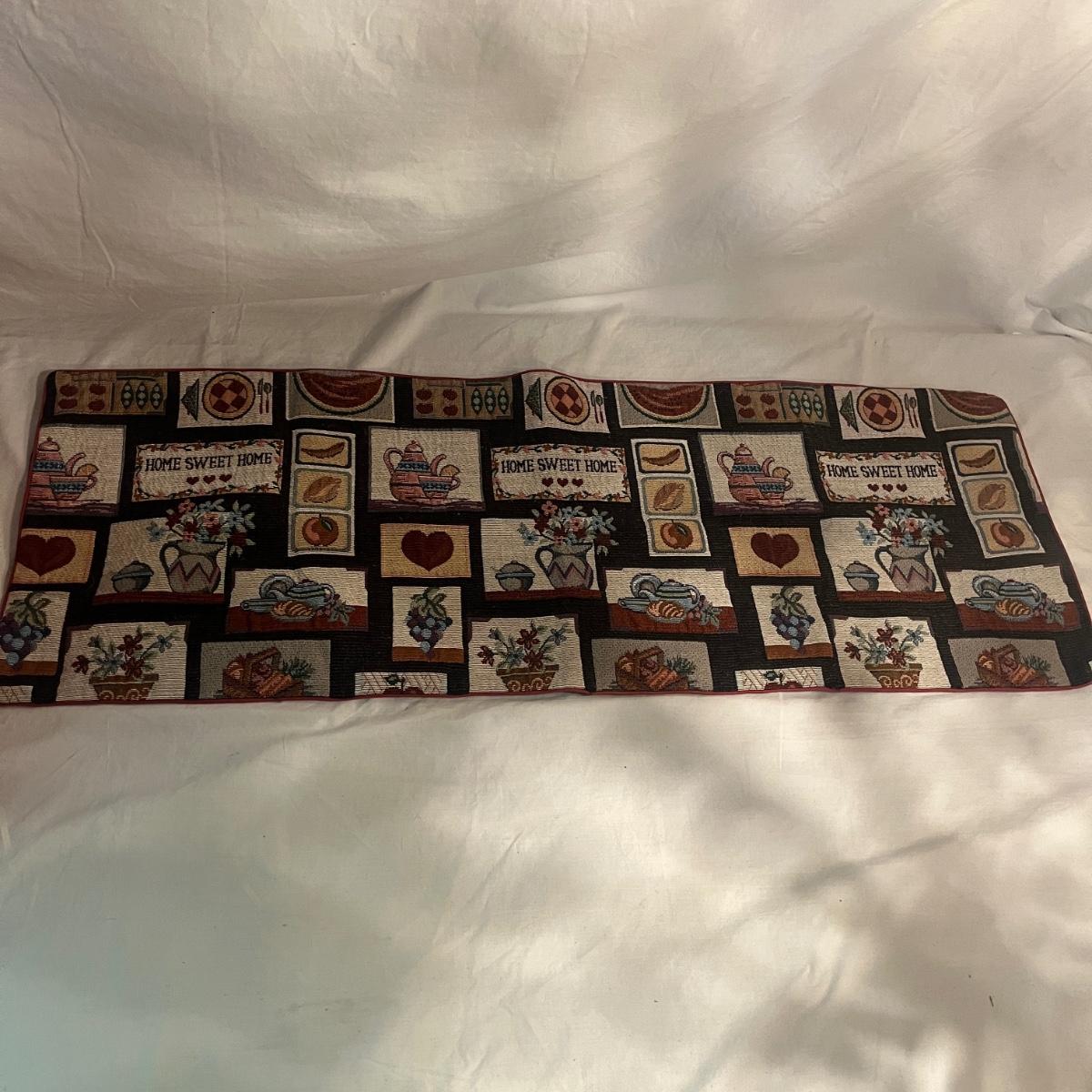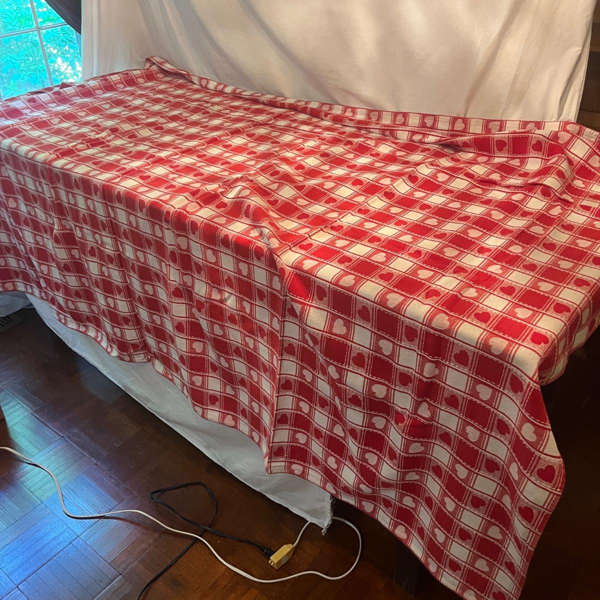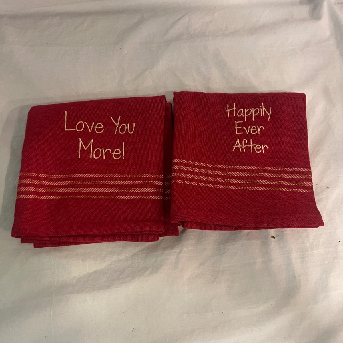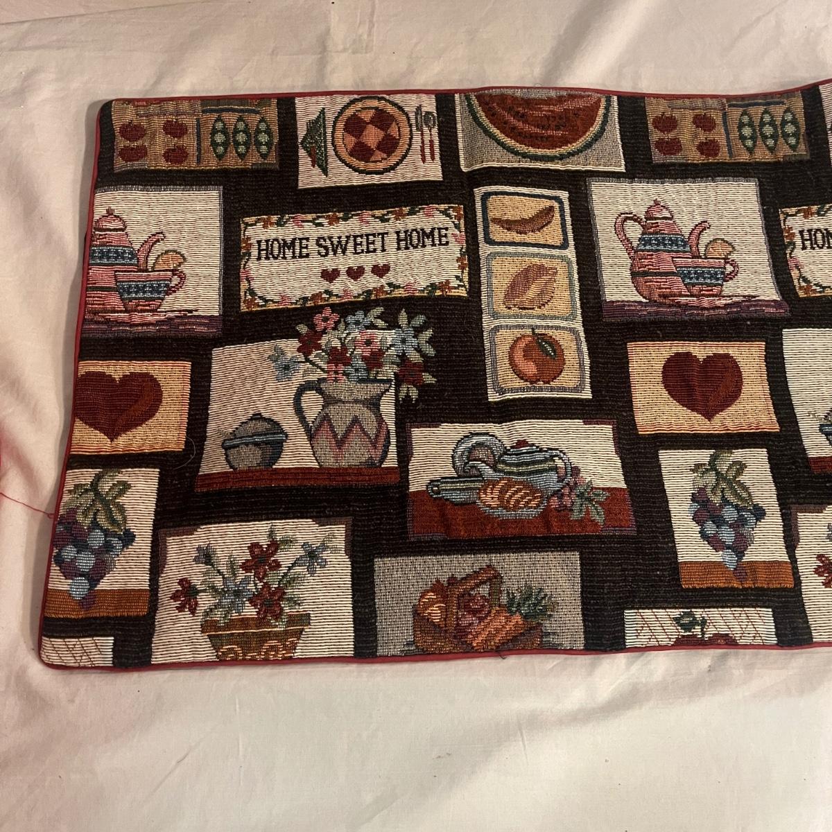 Lot includes a selection of napkins, trivets, table runners, placemats and a tablecloth that measures 84” x 54”.