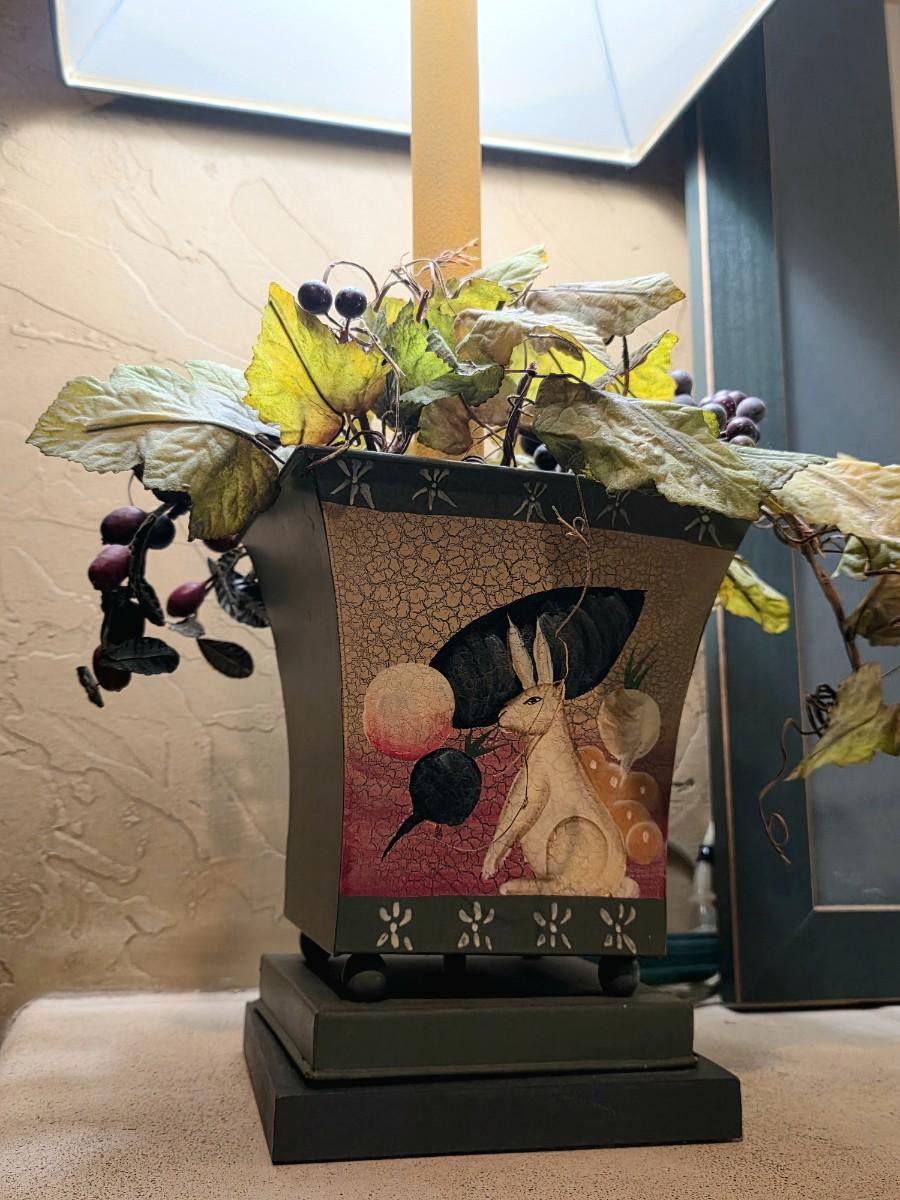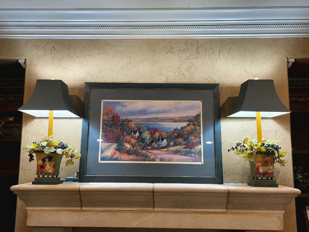 Countryside Framed Art and 2 Bunny Planter Style Tabletop Lamps.