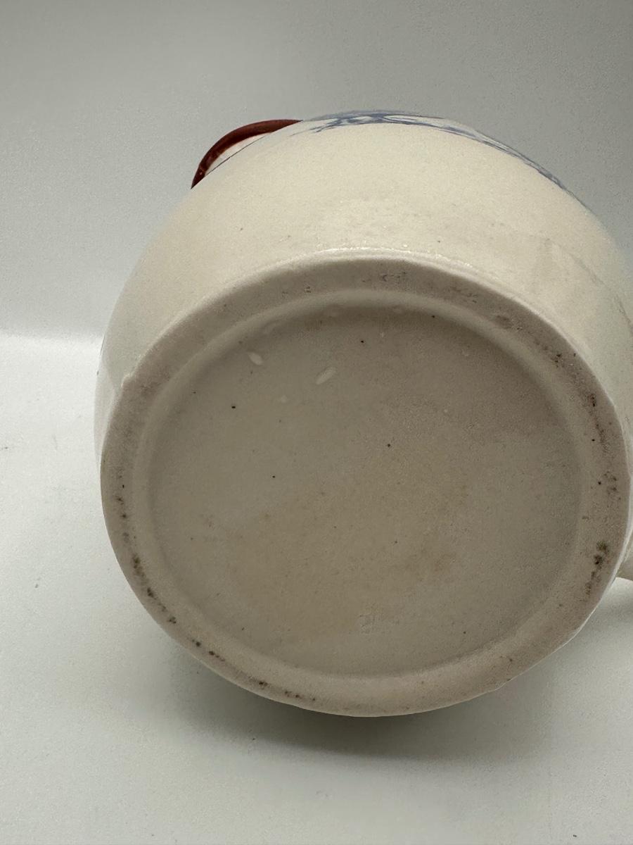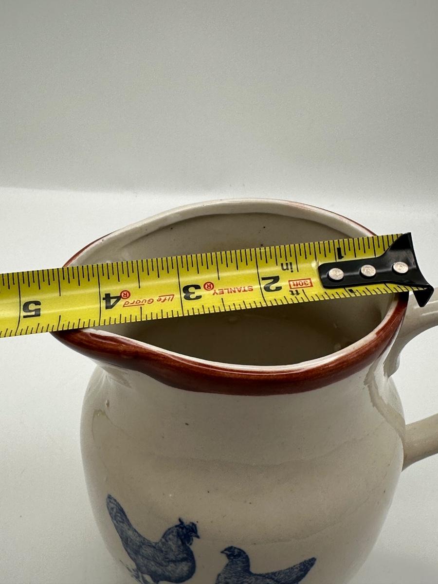 Country-Style Ceramic Pitcher with Blue Chicken Motif