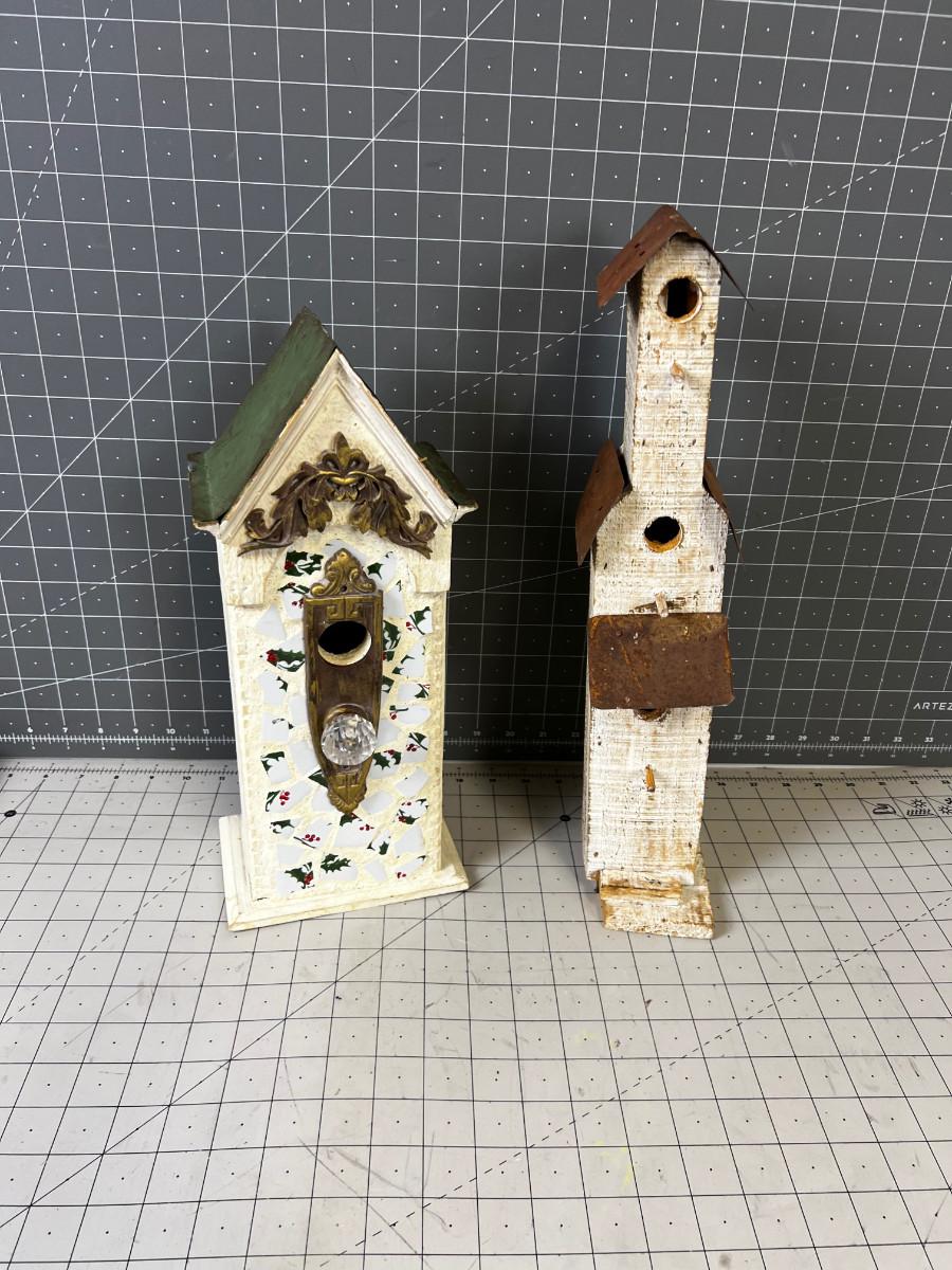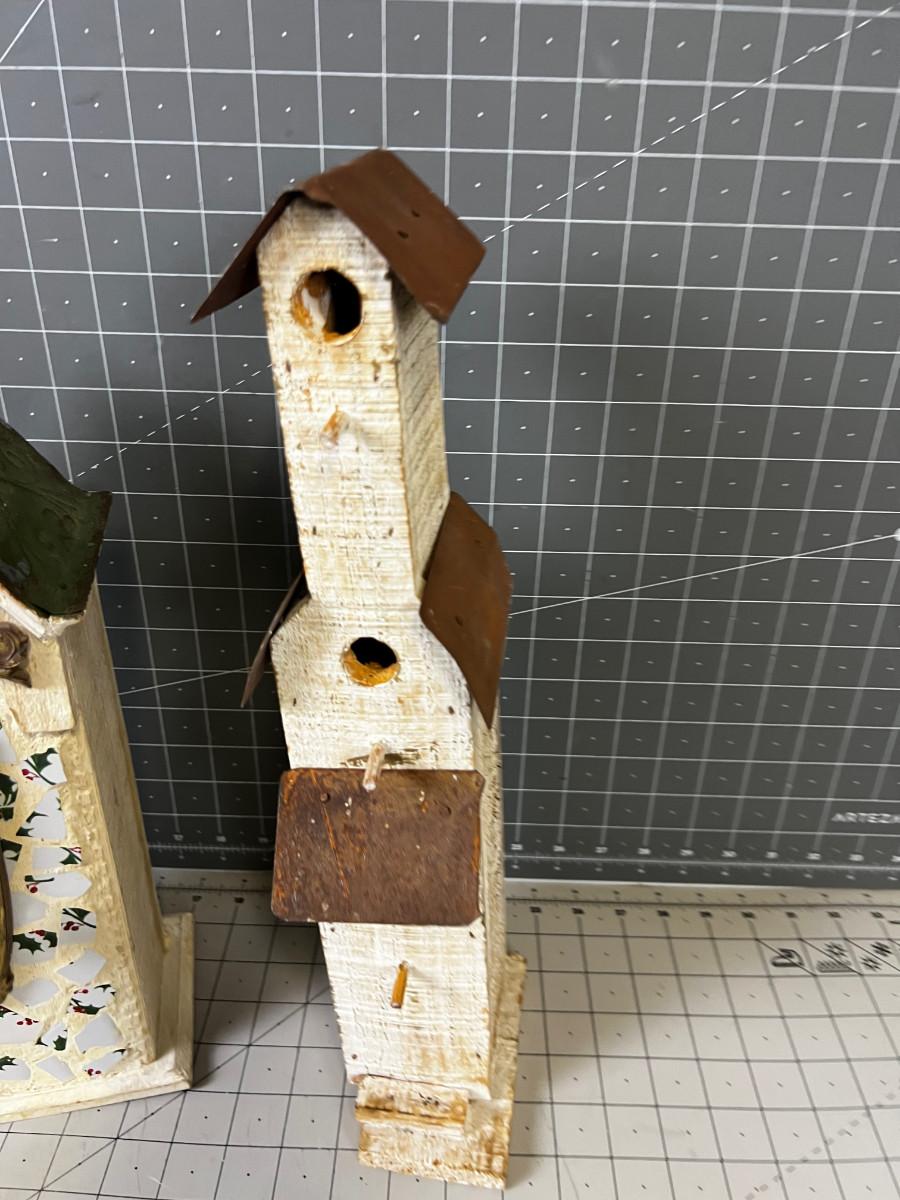 1 is missing a piece of its base. Good Condition. A little Weathered.