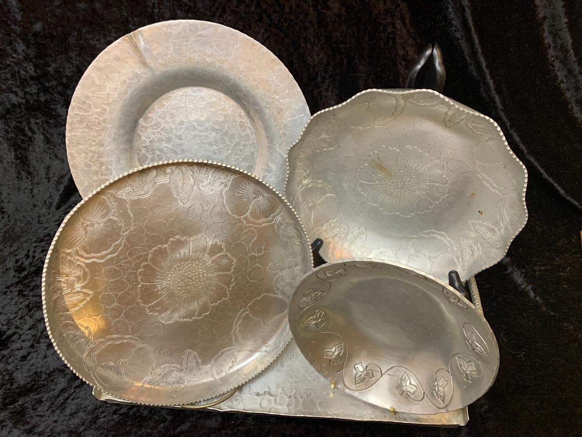 3 Pewter platters and 2 pewter bowls up for grabs here.