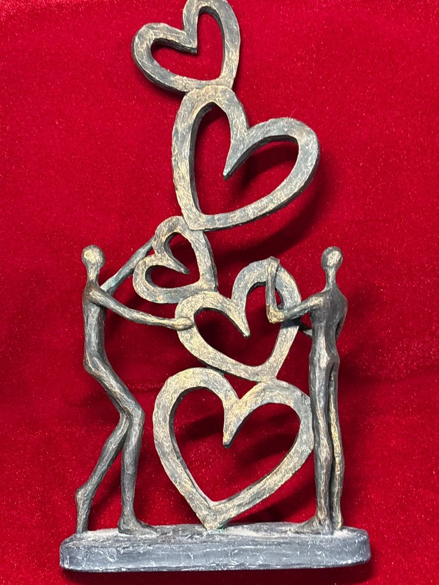 16.5 inch sculpture of couple with hearts , Unknown material and unmarked