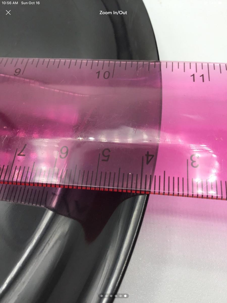 Approximately 10.5" wide; There are scratches on the plate