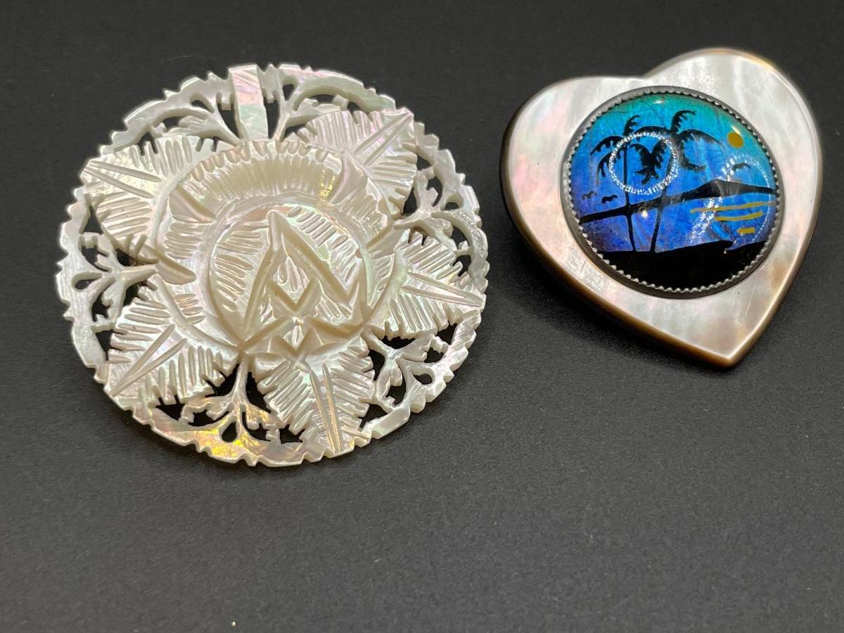2 shell/mother of pearl pins