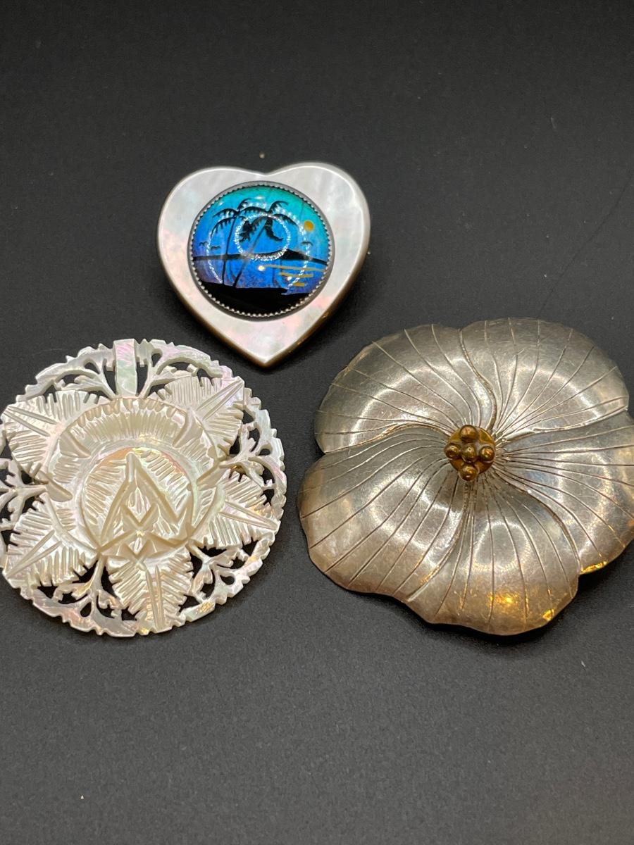 Courtney Sterling pin/pendant and mother of pearl/shell pins