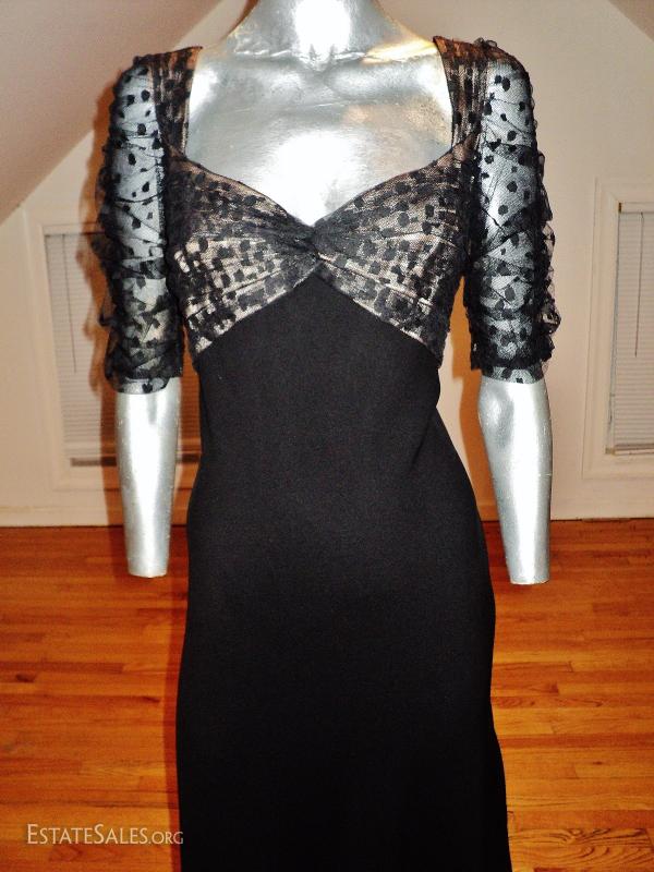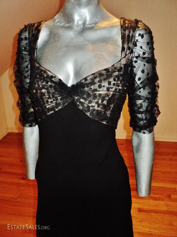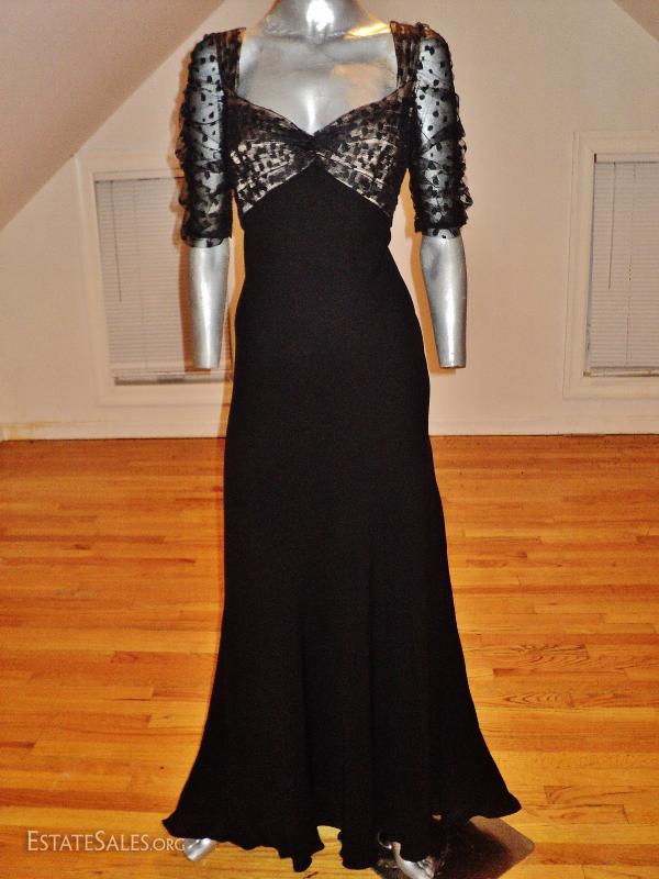 From the famous couture collection it was only used for runway show. Cut on a bias so has a bit of a stretch. The bodice is Empire illusion polka dot tulle that is shirred and detailed.