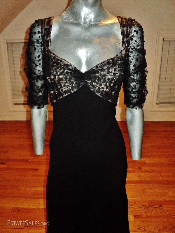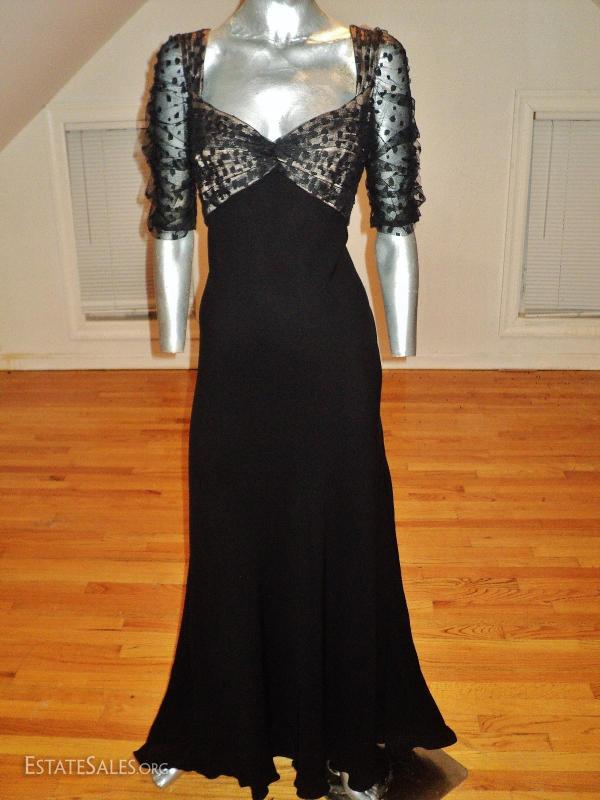 From the famous couture collection it was only used for runway show. Cut on a bias so has a bit of a stretch. The bodice is Empire illusion polka dot tulle that is shirred and detailed.
