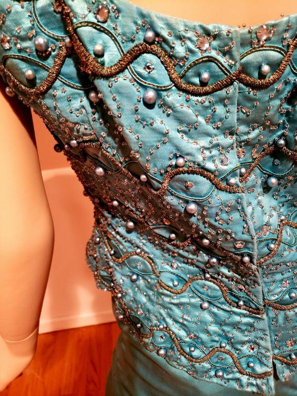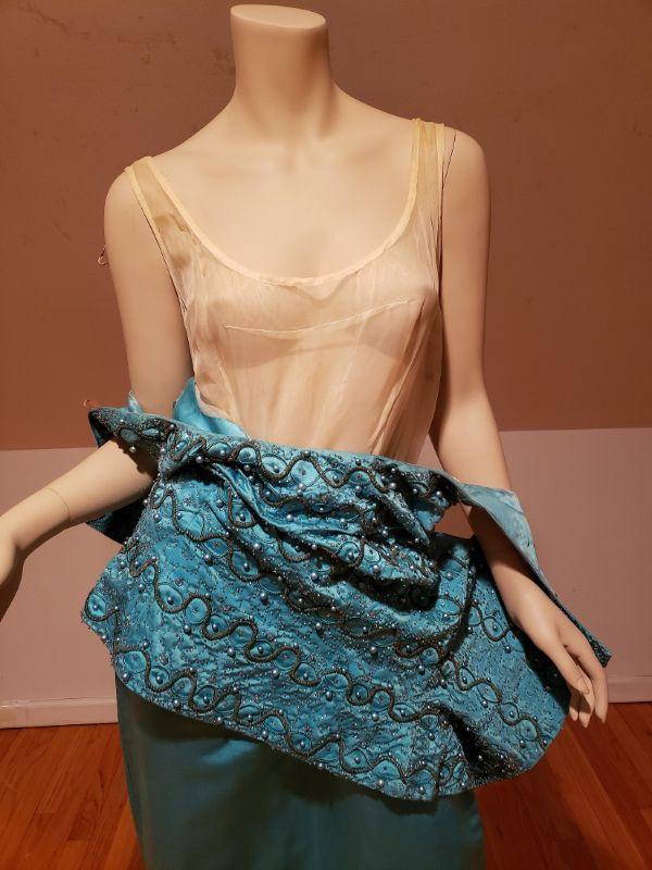 An amazing Cocktail gown that is in two parts, The maxi dress with an organza bodice and the top Embellished shantung that goes atop of it. with a back metal zipper.