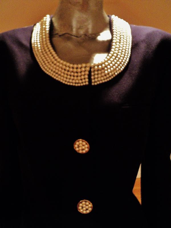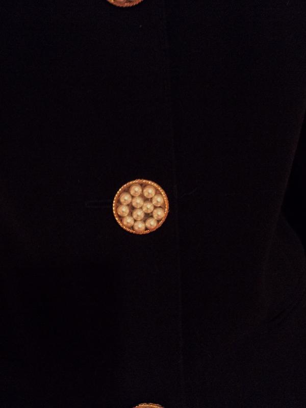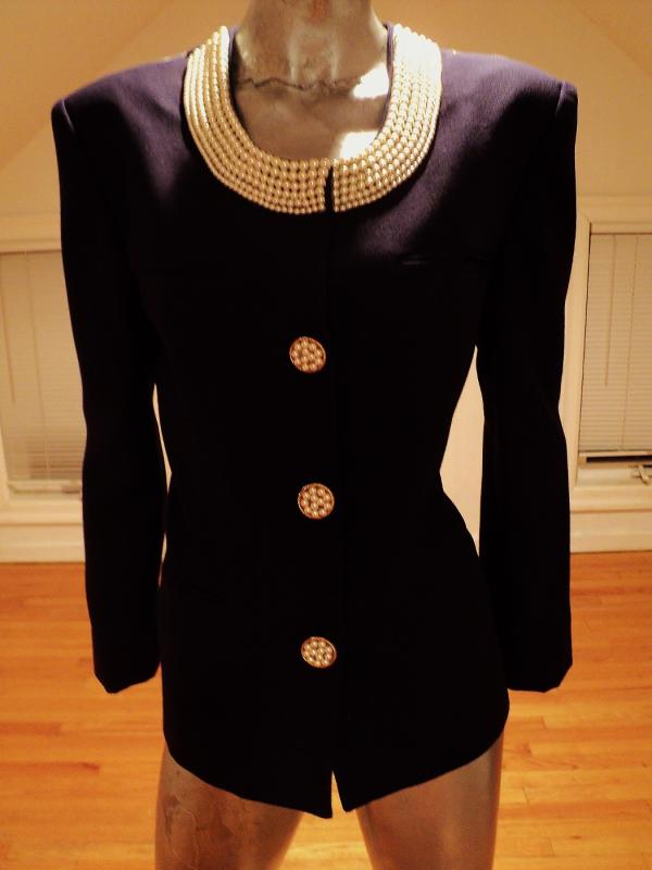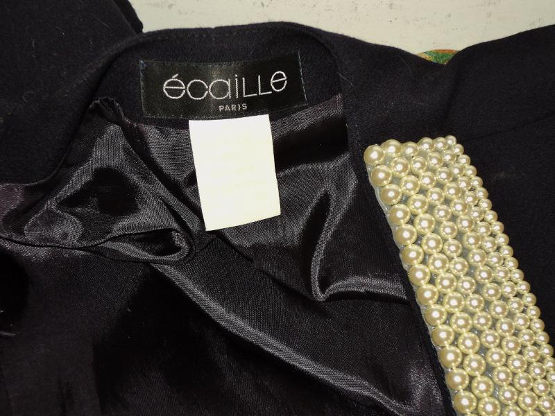 By famous Ecaille Paris made in France an amazing wool jacket heavy embellished with pearls at neck and buttons
