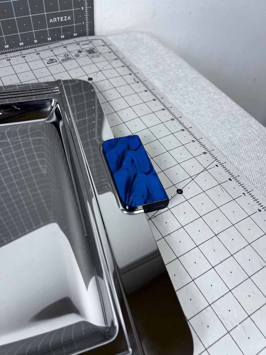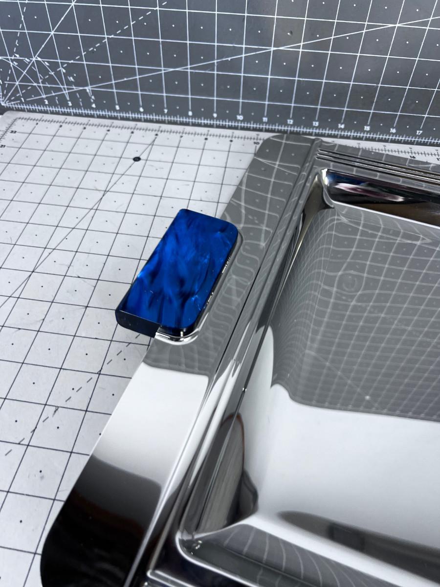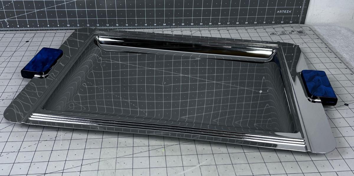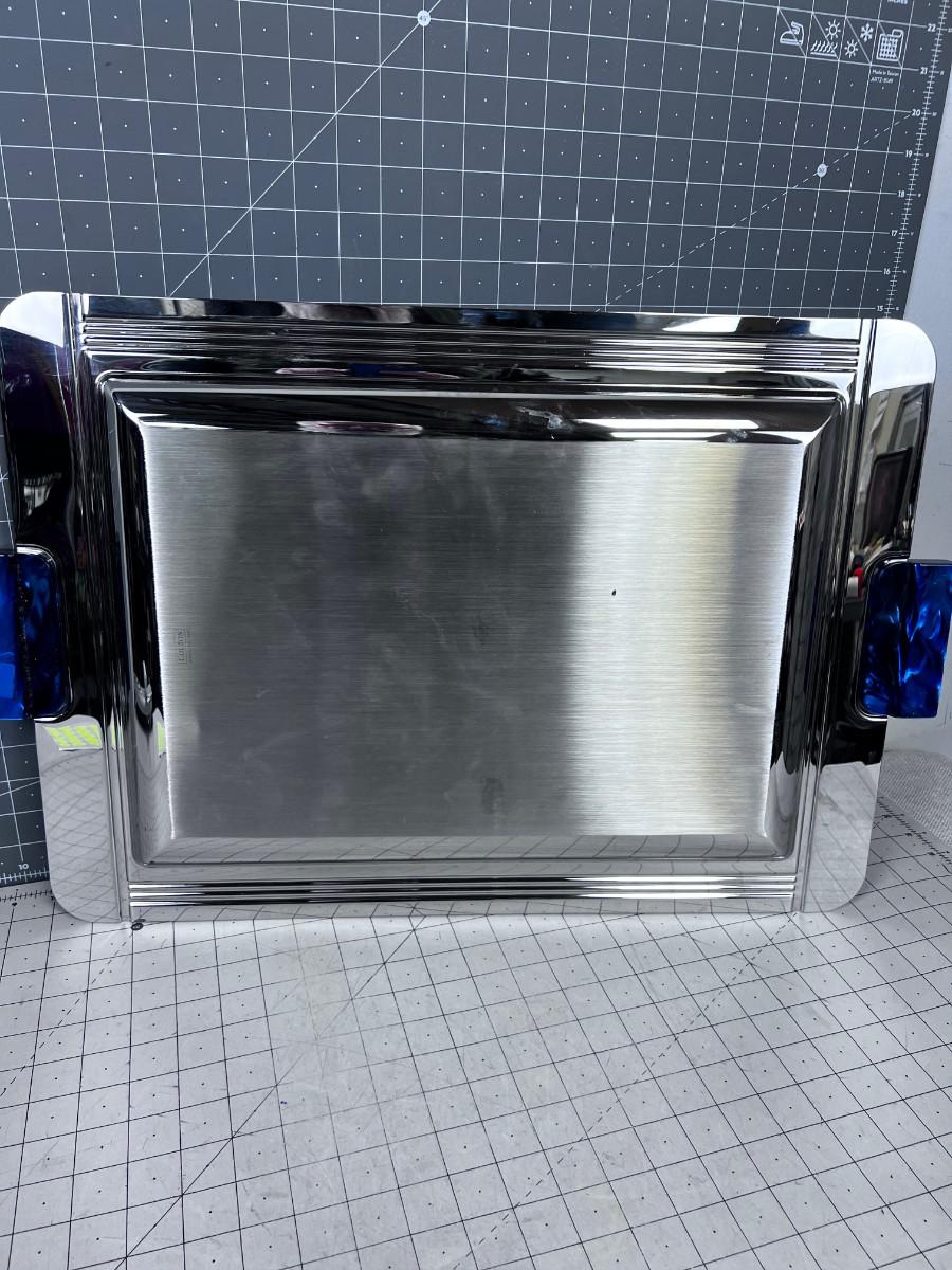 a few small Dents. Blue Bakelite Style Handle. BIG 24" X 16" Chrome Finish. COOL!!! Fabulous for parties!!!