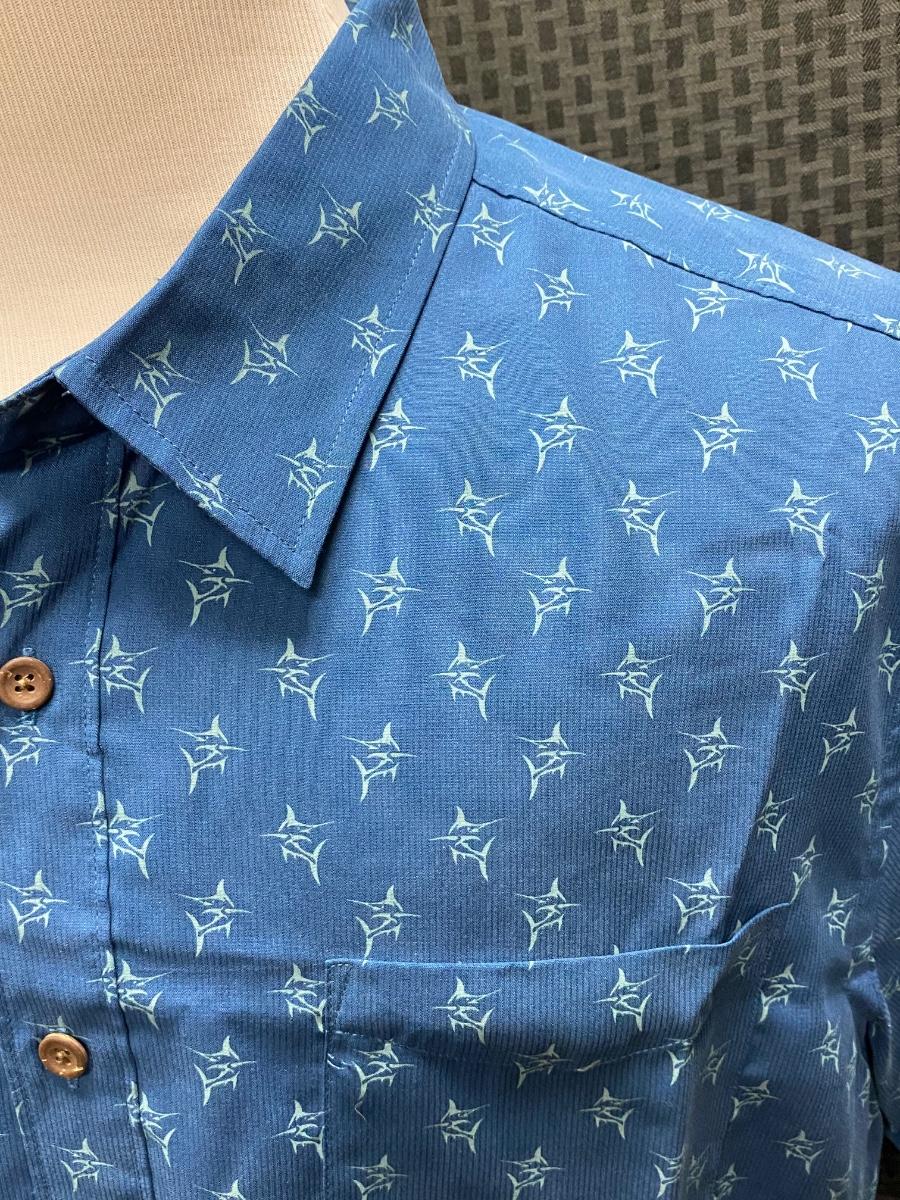 COVA Blue Swordfish Print Button Front Men's Shirt XL