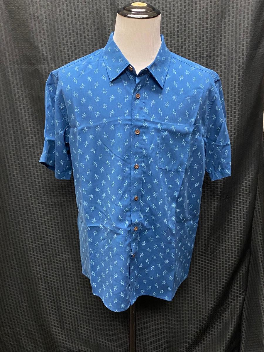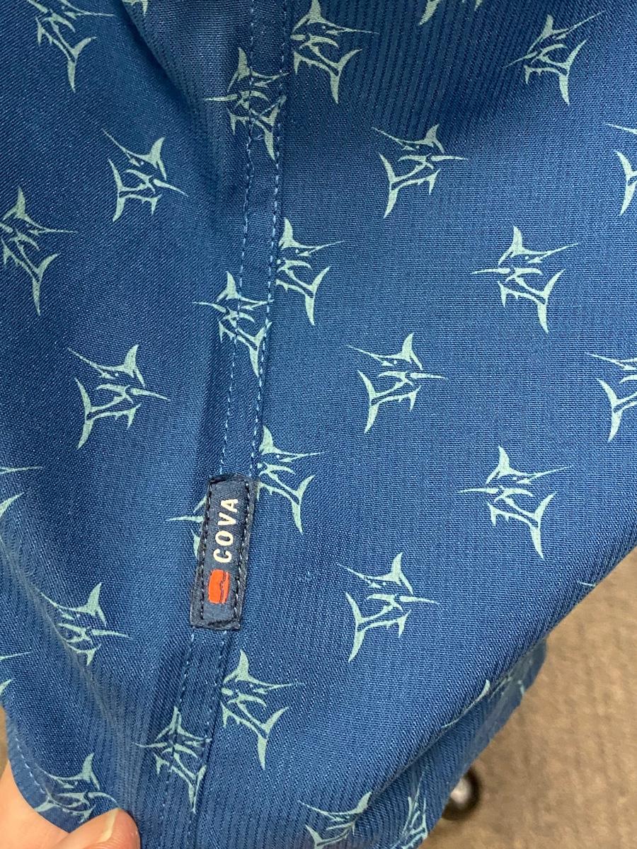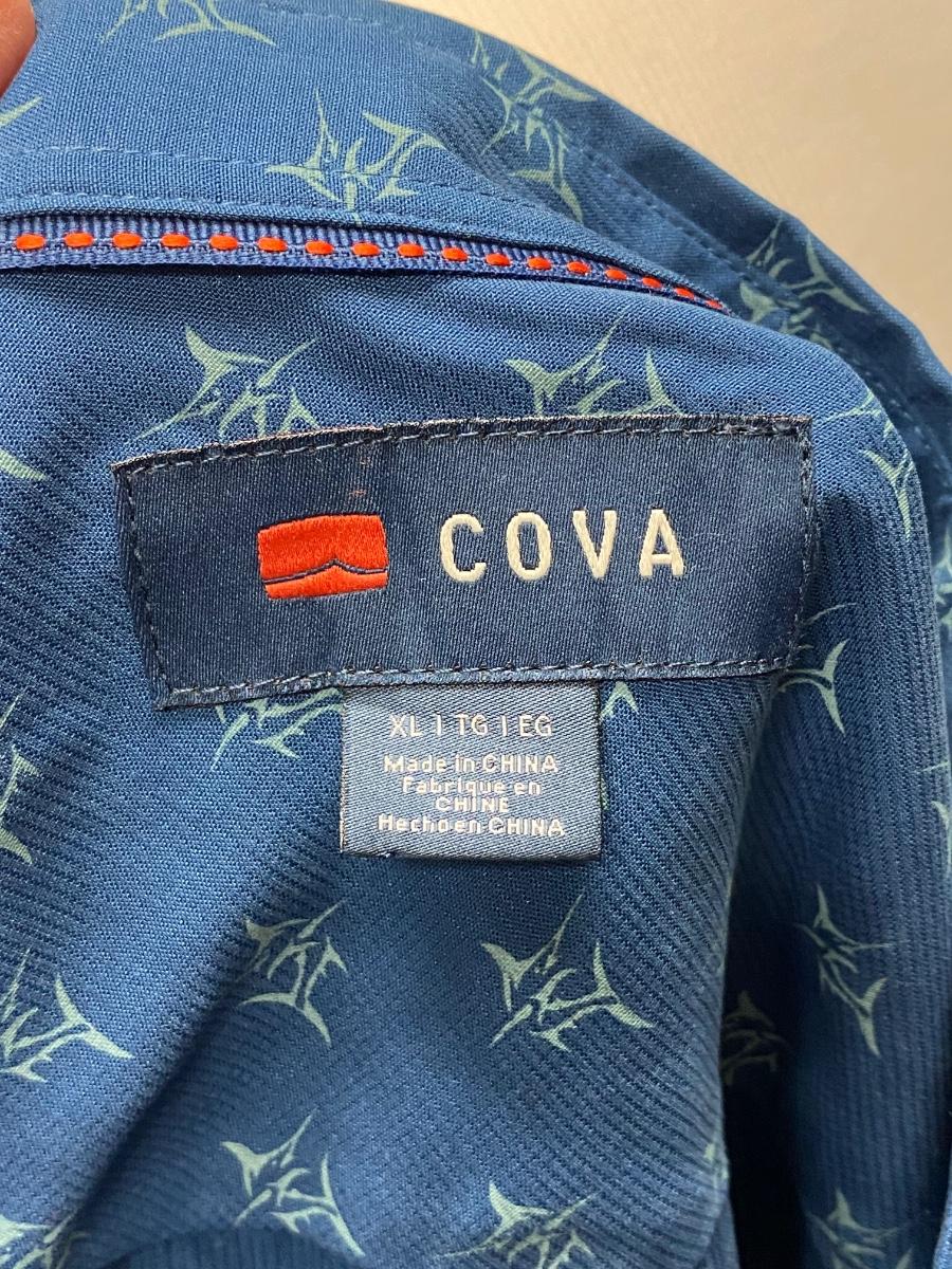 Men's COVA blue swordfish print button front shirt. Size XL in good condition.