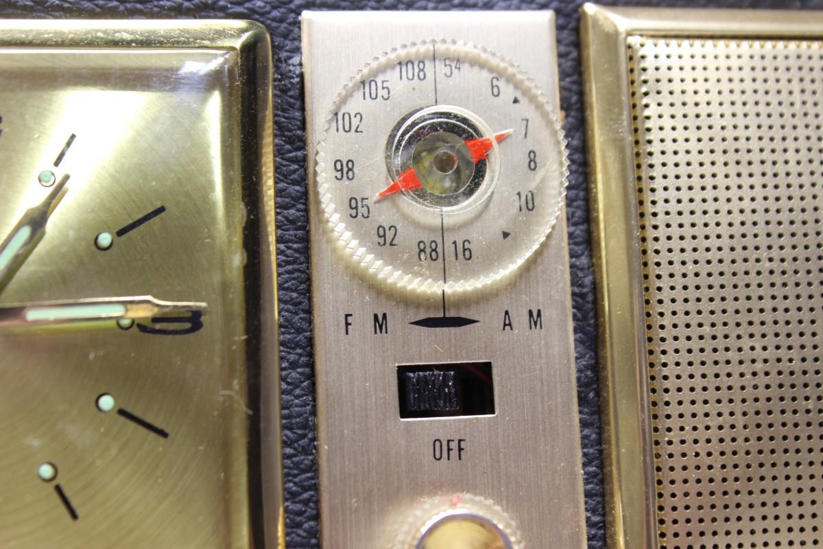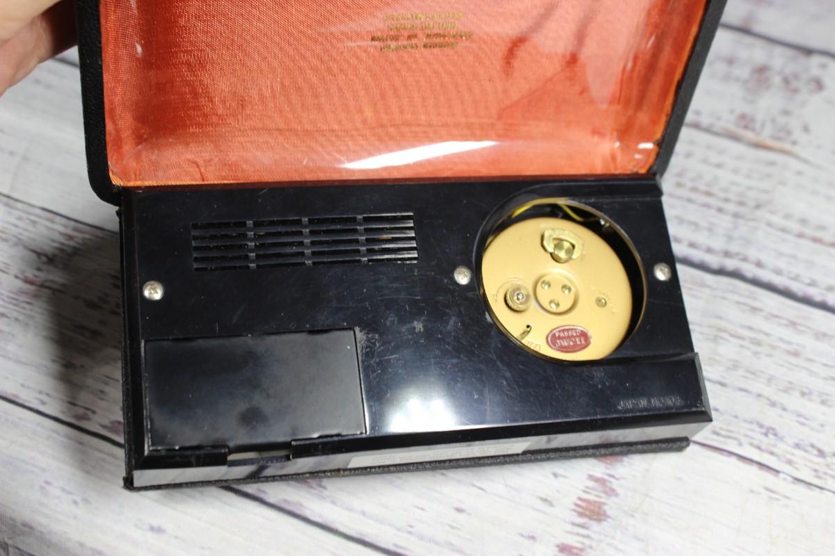 Vintage Retro Atomic Travel Alarm Clock AM FM Radio Leather Case Japan