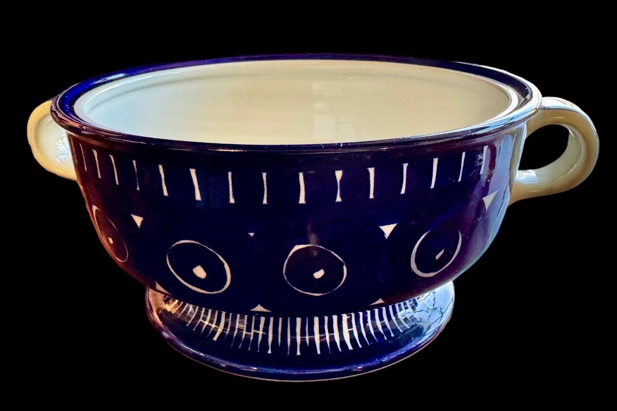 Each piece is hand painted, high quality ceramic. Features a lovely design in cobalt blue manufactured in Finland. Decoration by Ulla Procope Discontinued - Hard to find.
