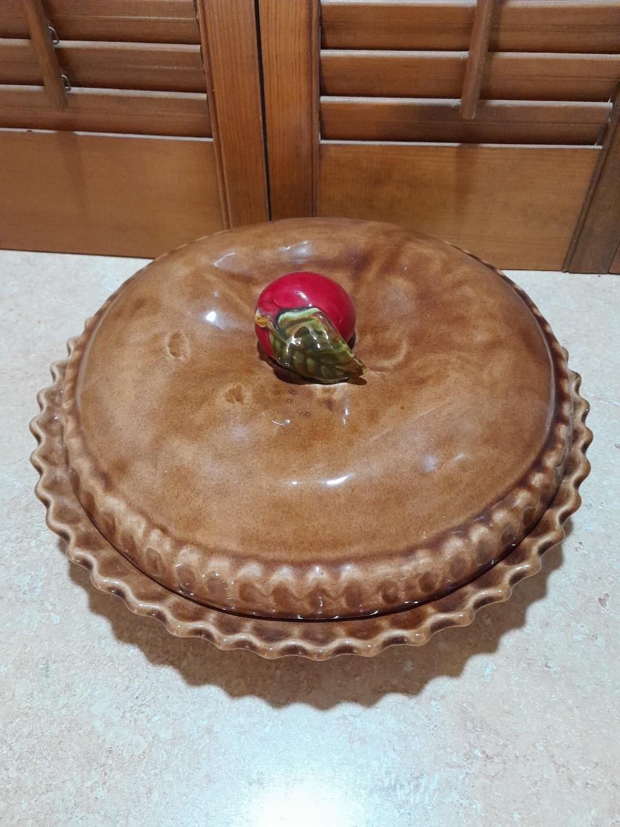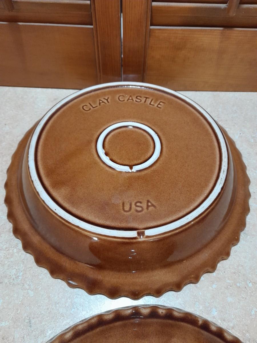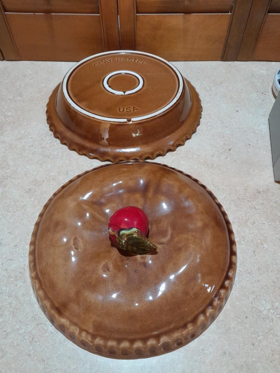 COVERED CLAY CASTLE APPLE PIE DISH WITH PIE BIRD