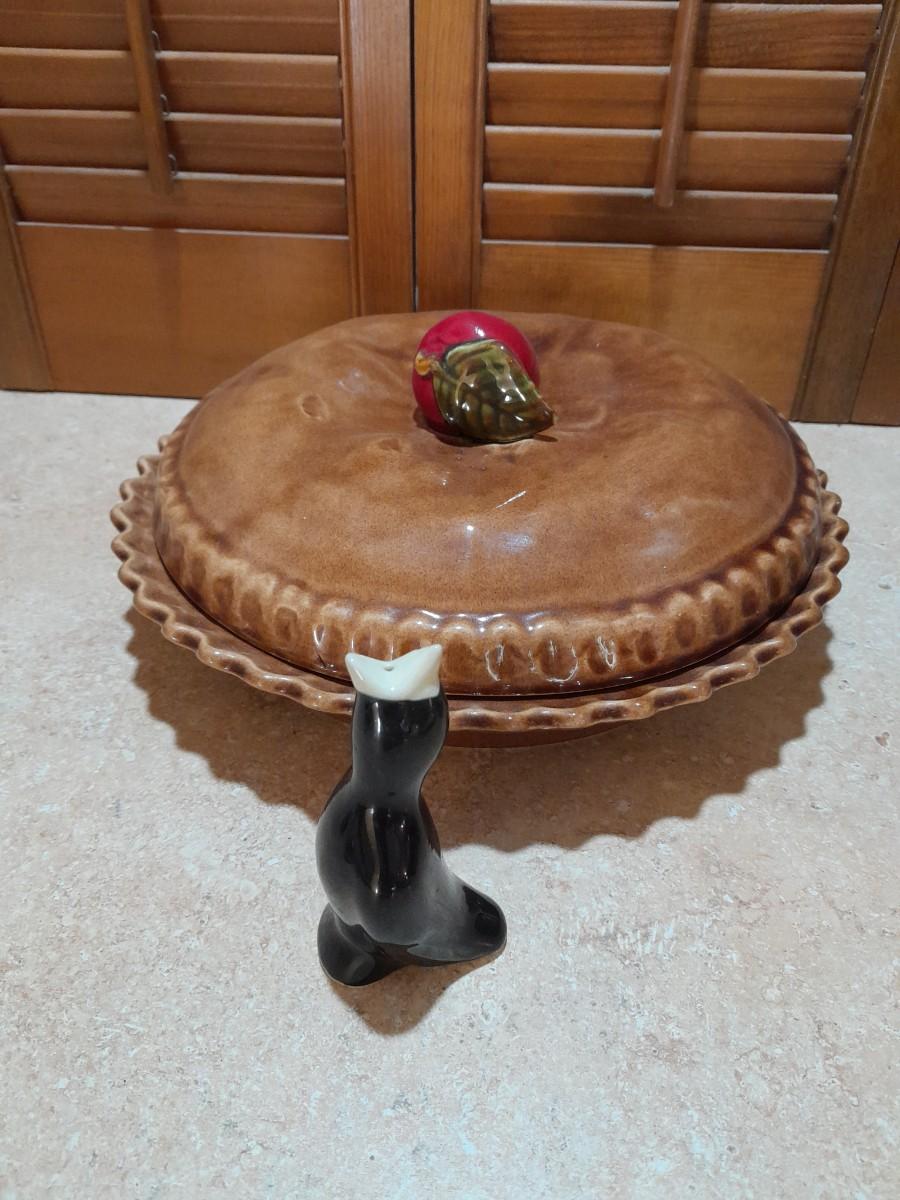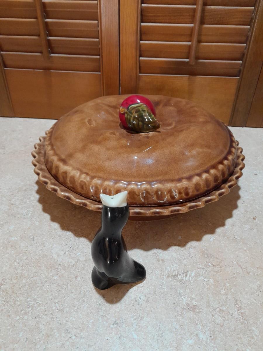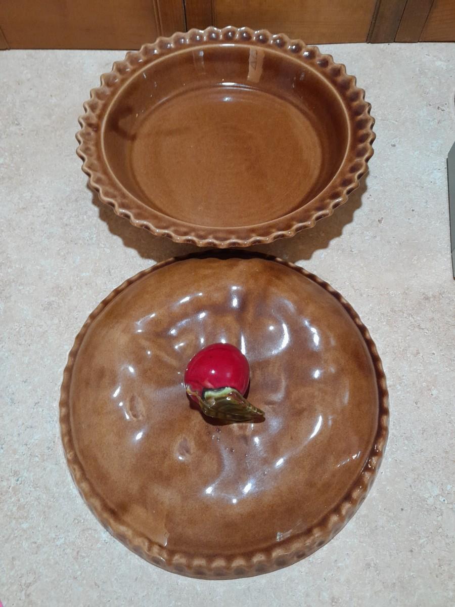 COVERED CLAY CASTLE APPLE PIE DISH WITH PIE BIRD