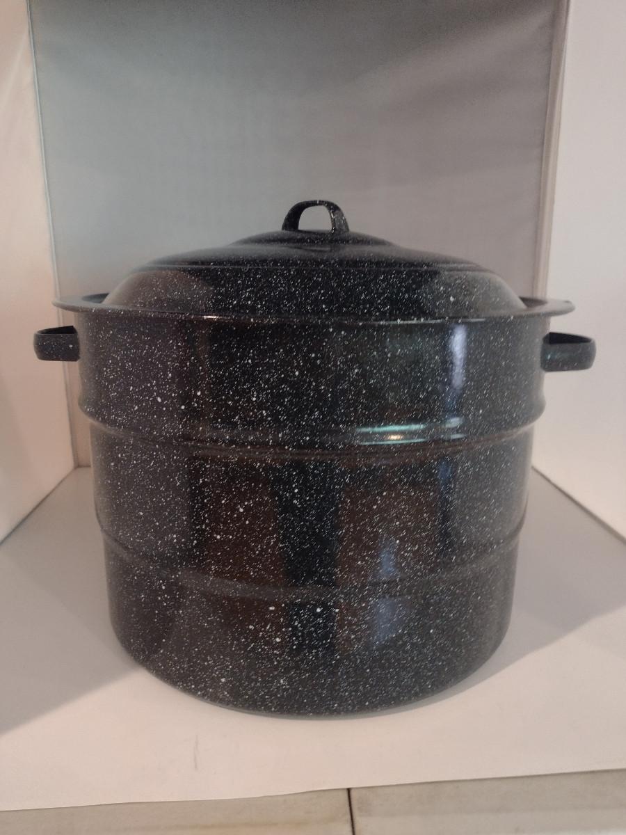 Covered Enameled Pot with Rack for Water Bath Canning