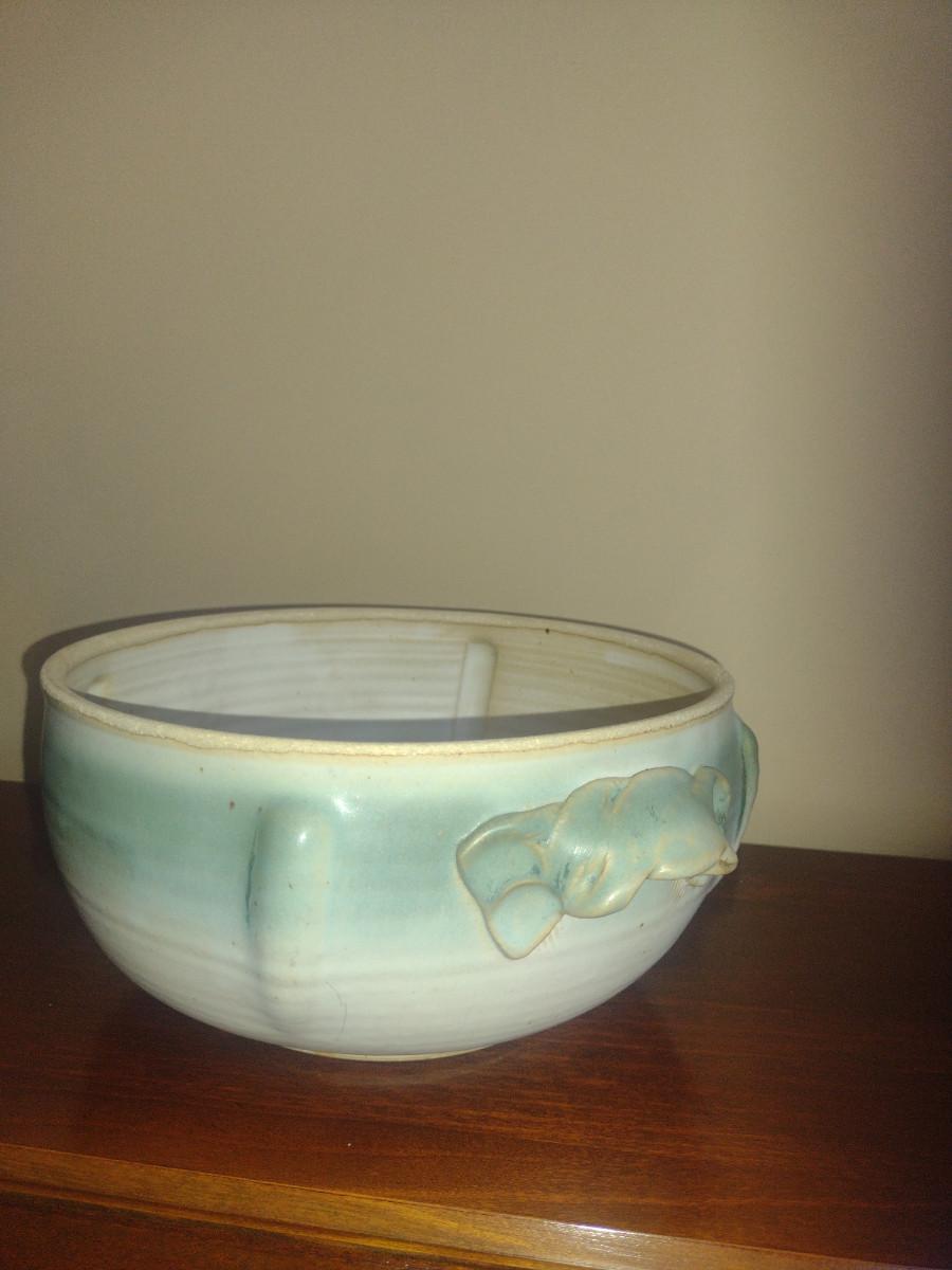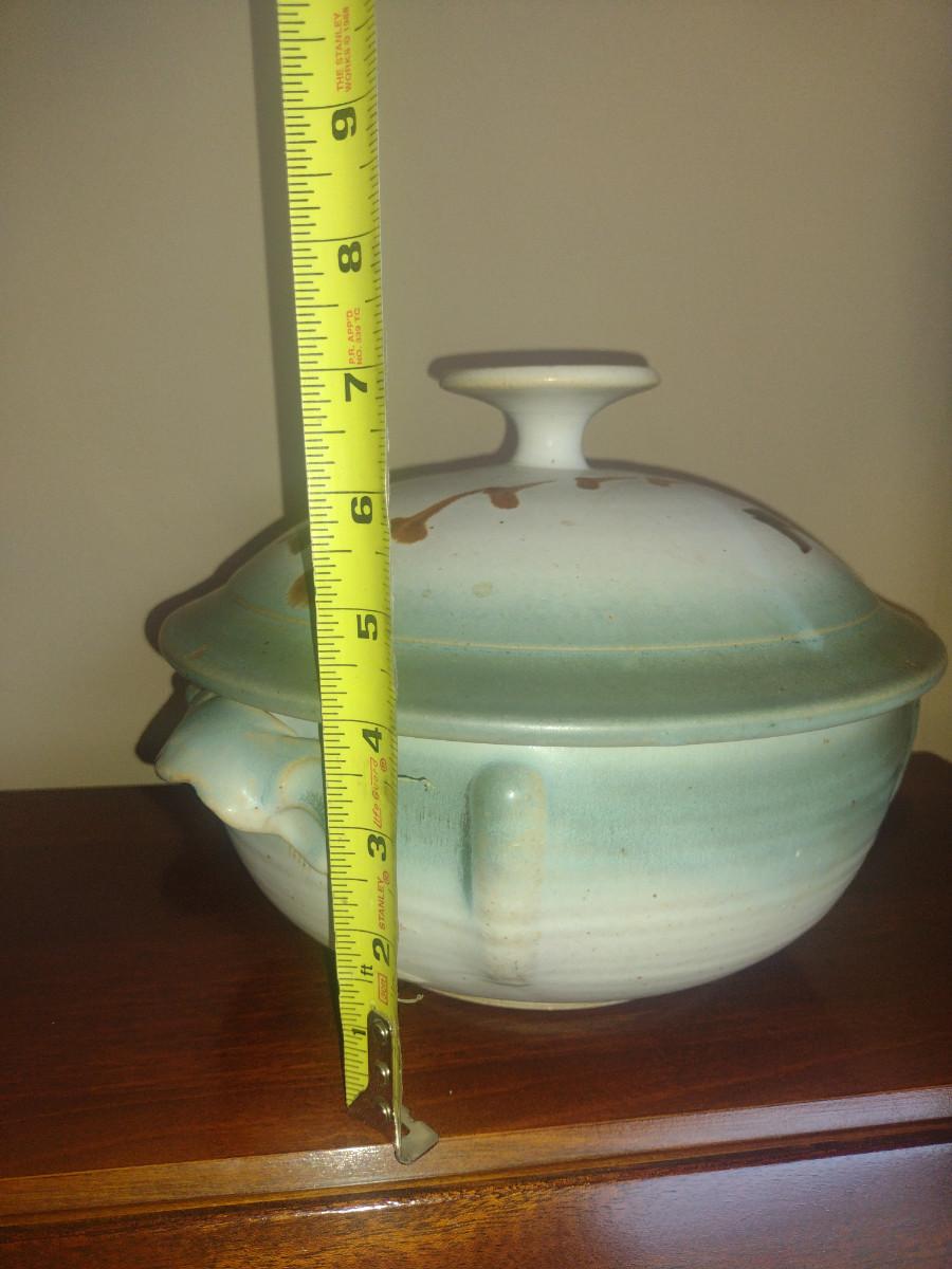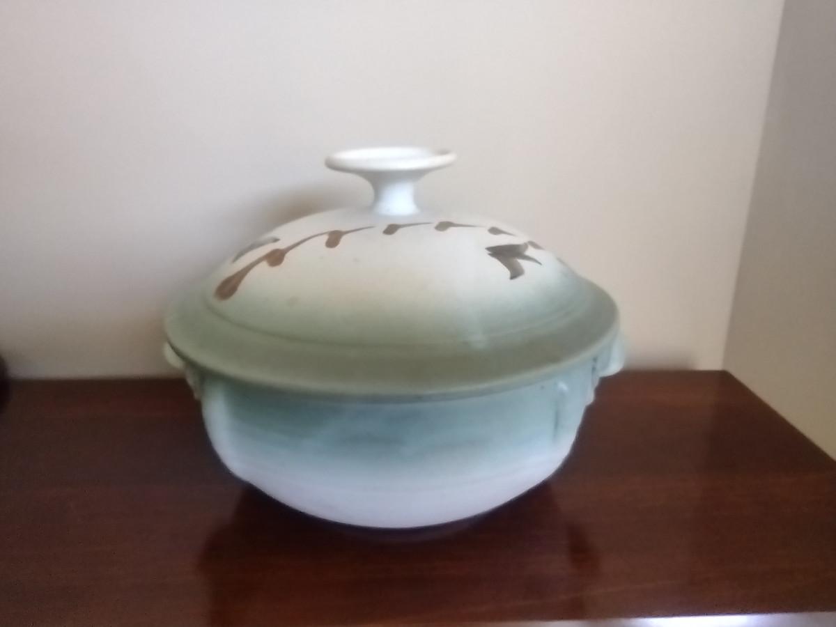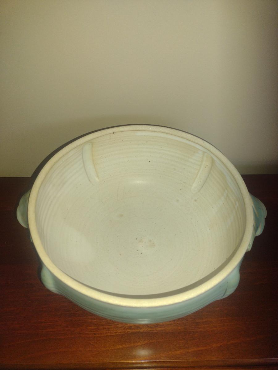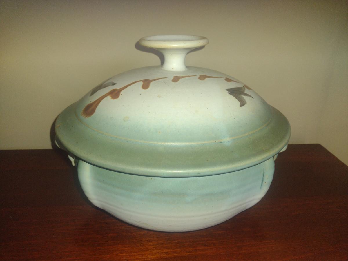 Covered Pottery Baker/Vegetable Bowl- Signed by Artist- Approx 9" in Diameter