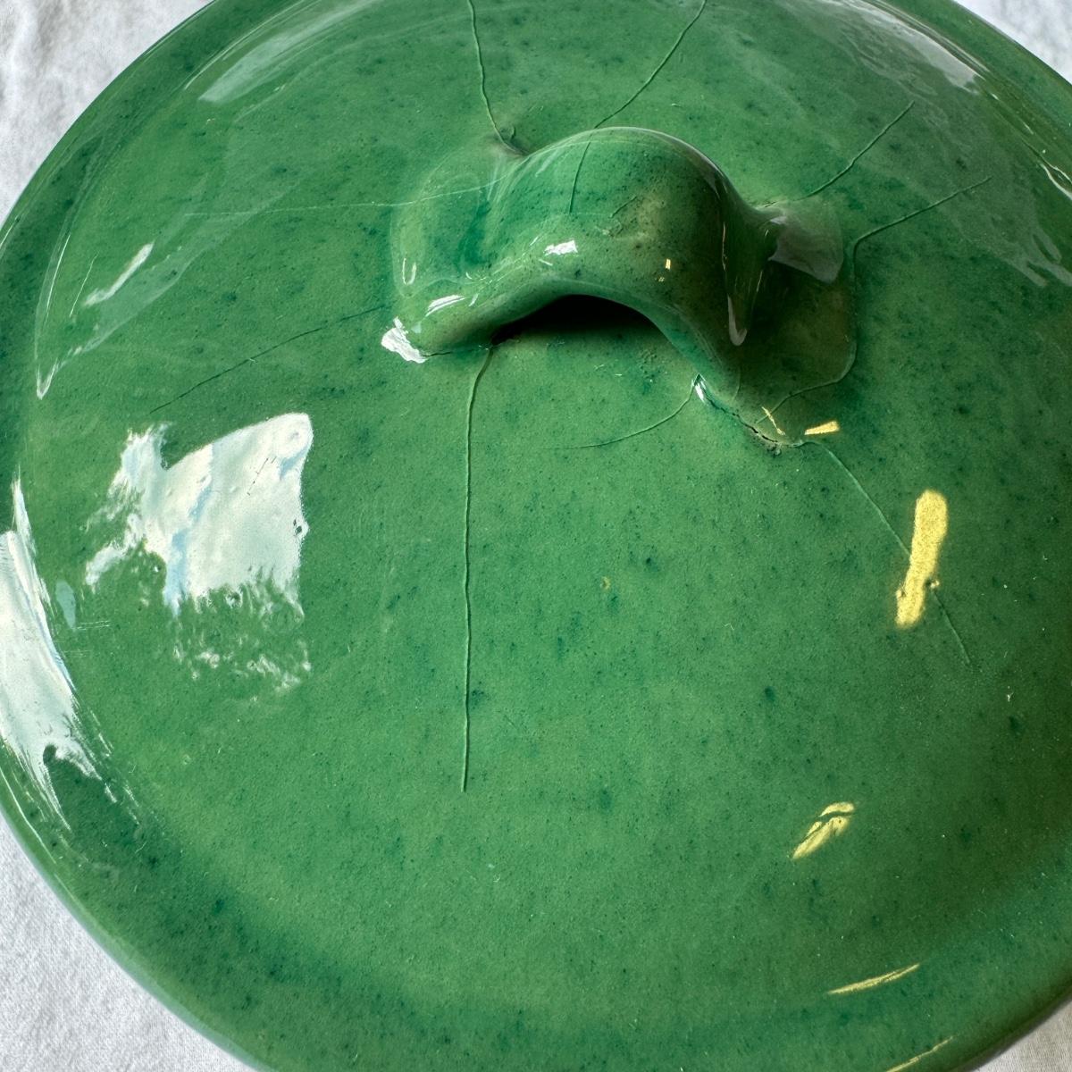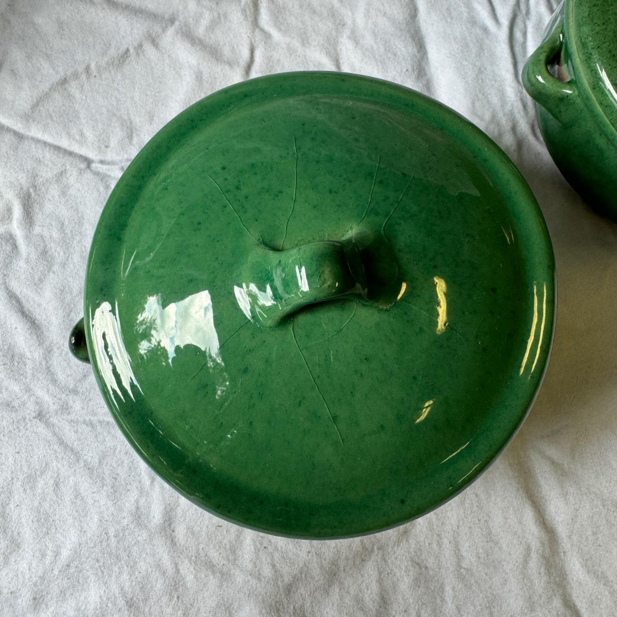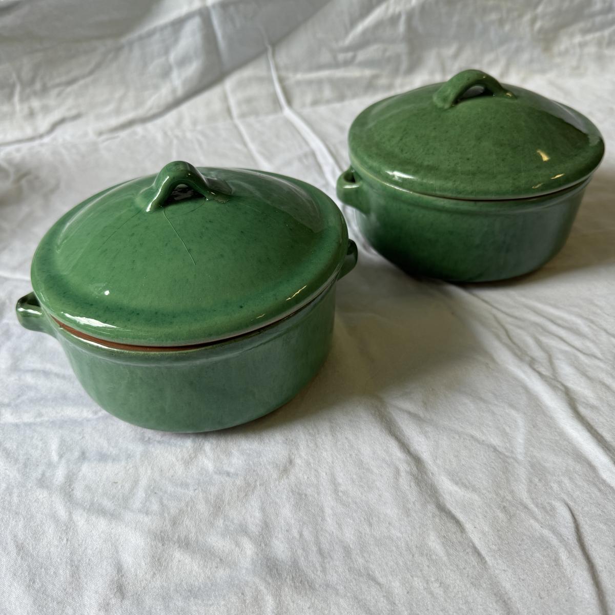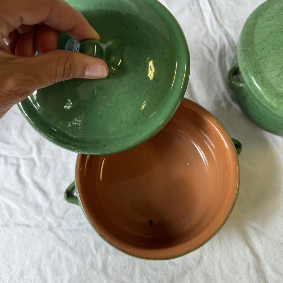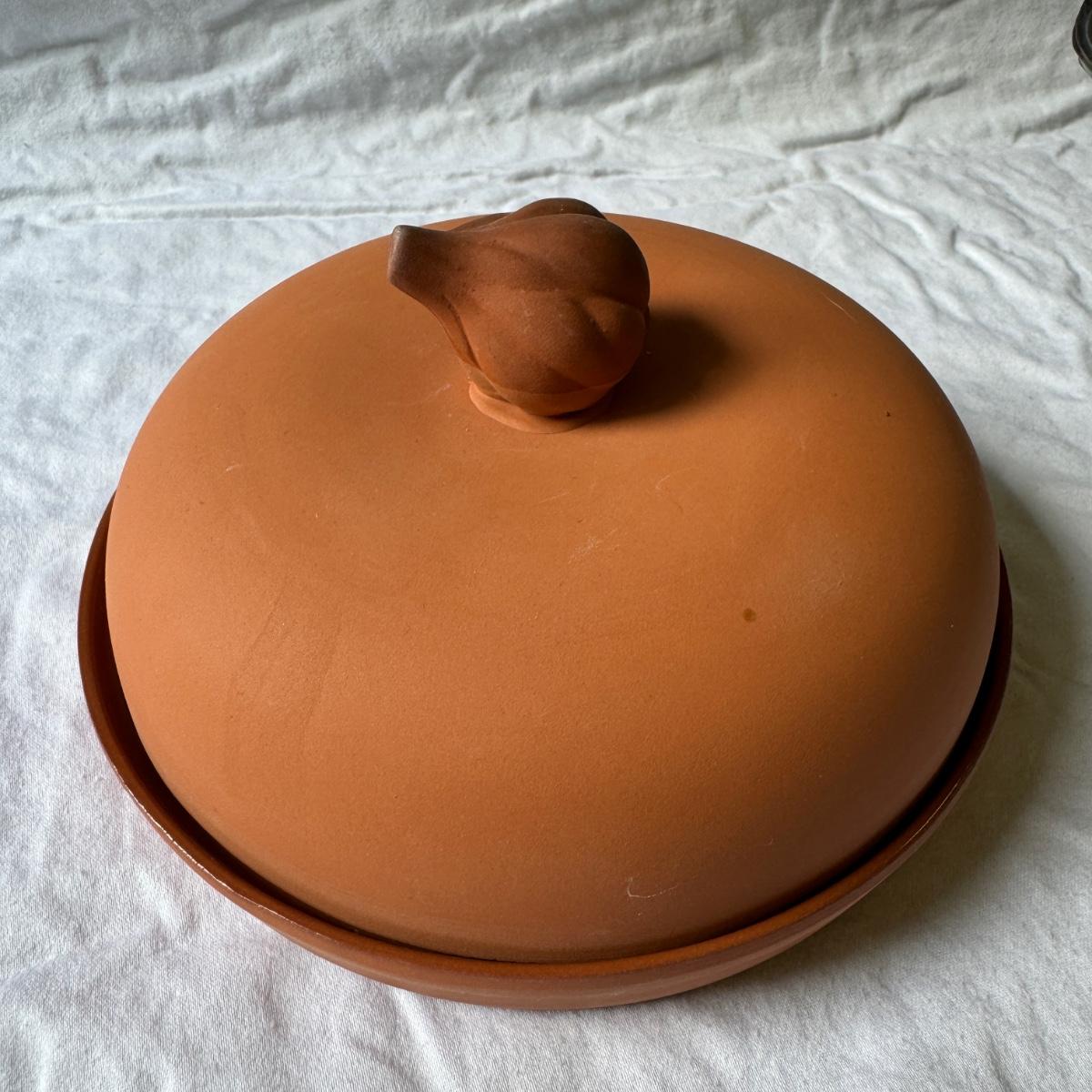 Large Covered Pot by Hull, two green William Sonoma dishes (some crackling on glaze), two smaller brown dishes and one garlic roaster in like new condition. See photos for measurements. Shipping available. Shipping can be costly. We suggest contacting our preferred local shipping provider, Postage Express, with dimensions and getting an estimate before bidding: (828) 255-9250 or shipping@postageexpressnc.com.