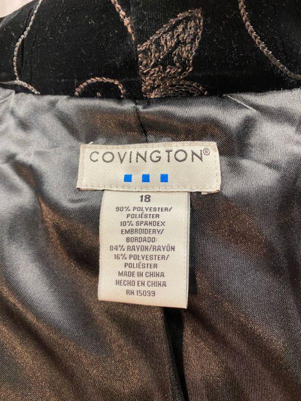 Covington Woman's Black Velvet Embroidered Jacket Size 18