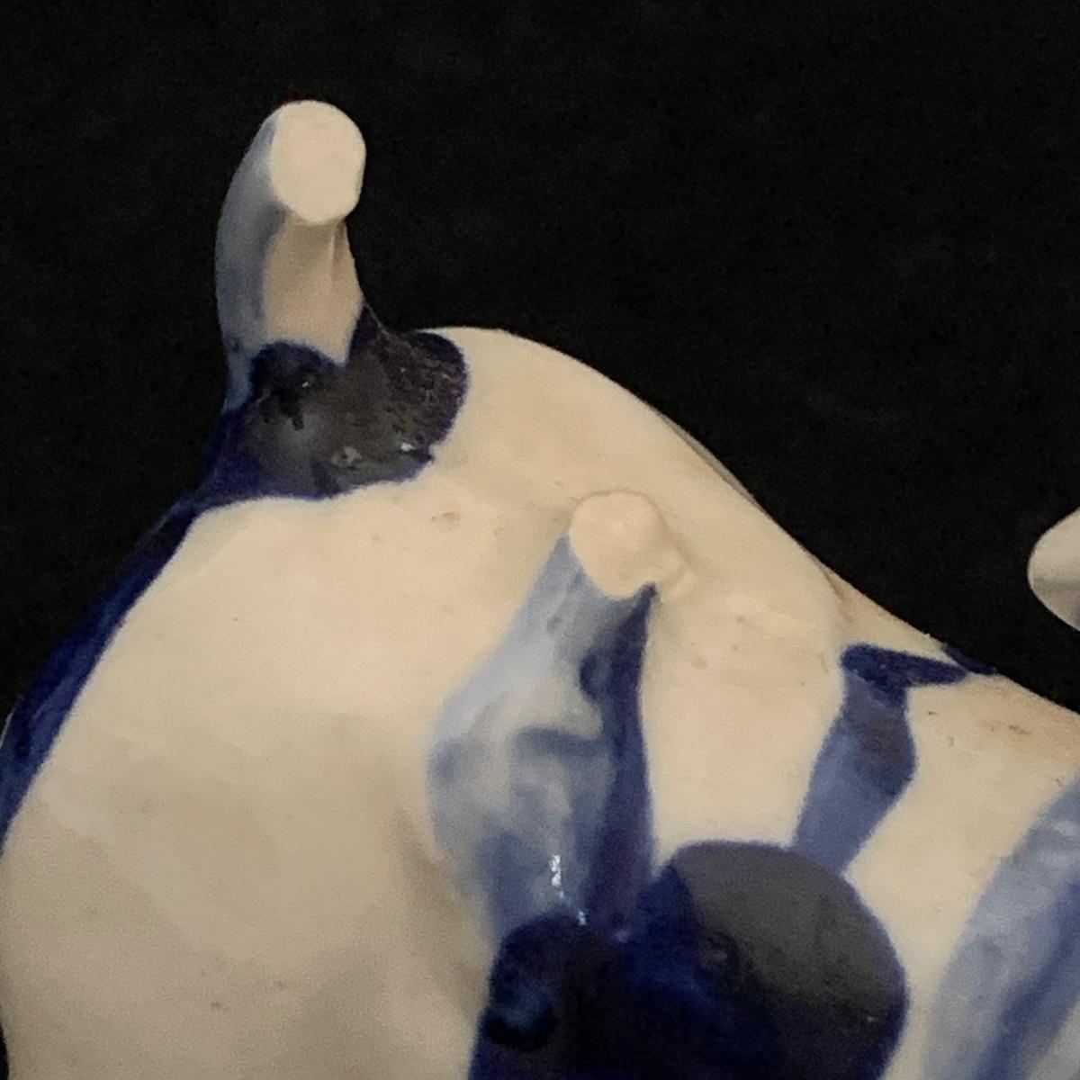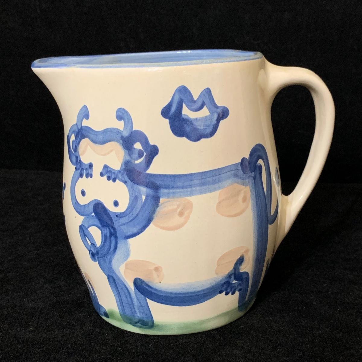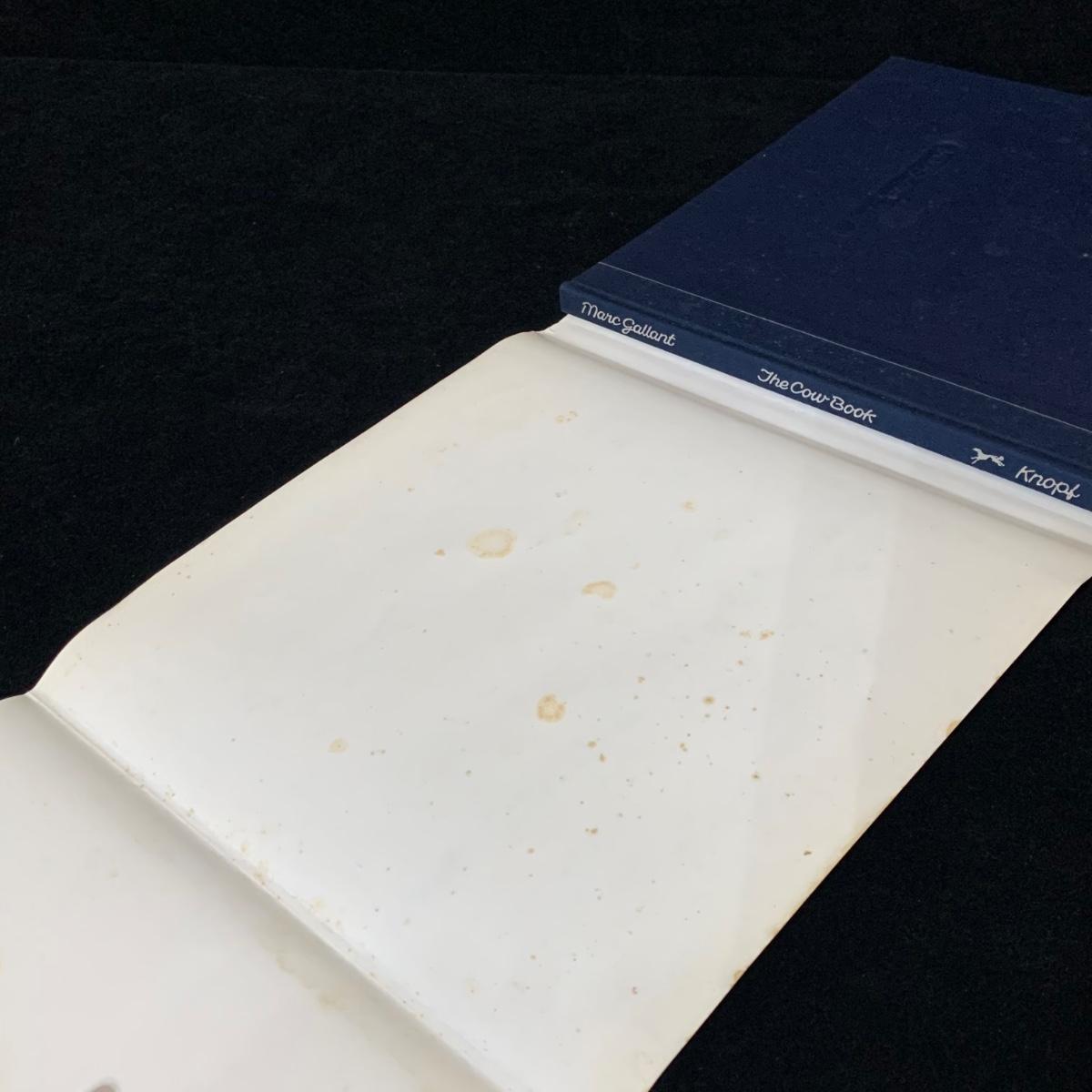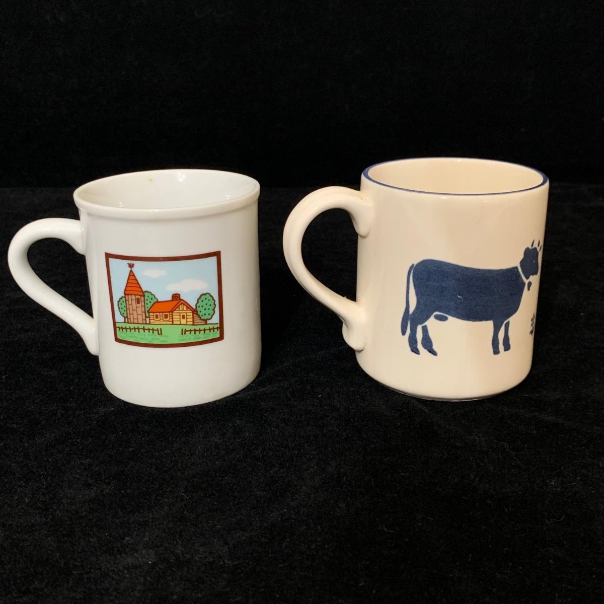 Eleven fun cow related kitchen items, art, & decor. Included is a framed pencil signed and numbered (61/300) print titled “First Spring” by Barbara Gettier. Wood frame measures 13.75” x 17.75”. Also included is a hardcover copy of “The Cow Book” by Marc Gallant, as well as two ceramic pitchers (one by M A Hadley), two mugs, a piece of wall hanging decor, three cow glasses, and a small Delft hand-painted cow figurine. All items are in good condition minus the Delft cow whose tail is broken and the cover & dust jacket of the book have some stains (not visible on the outside). A few items are dusty and just need to be cleaned.