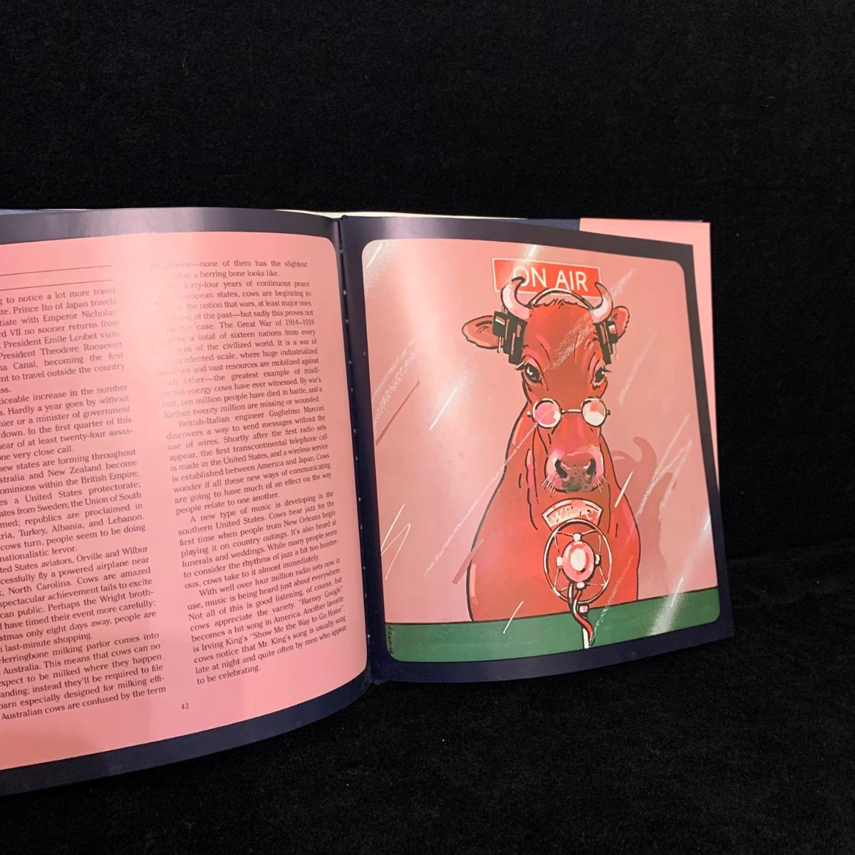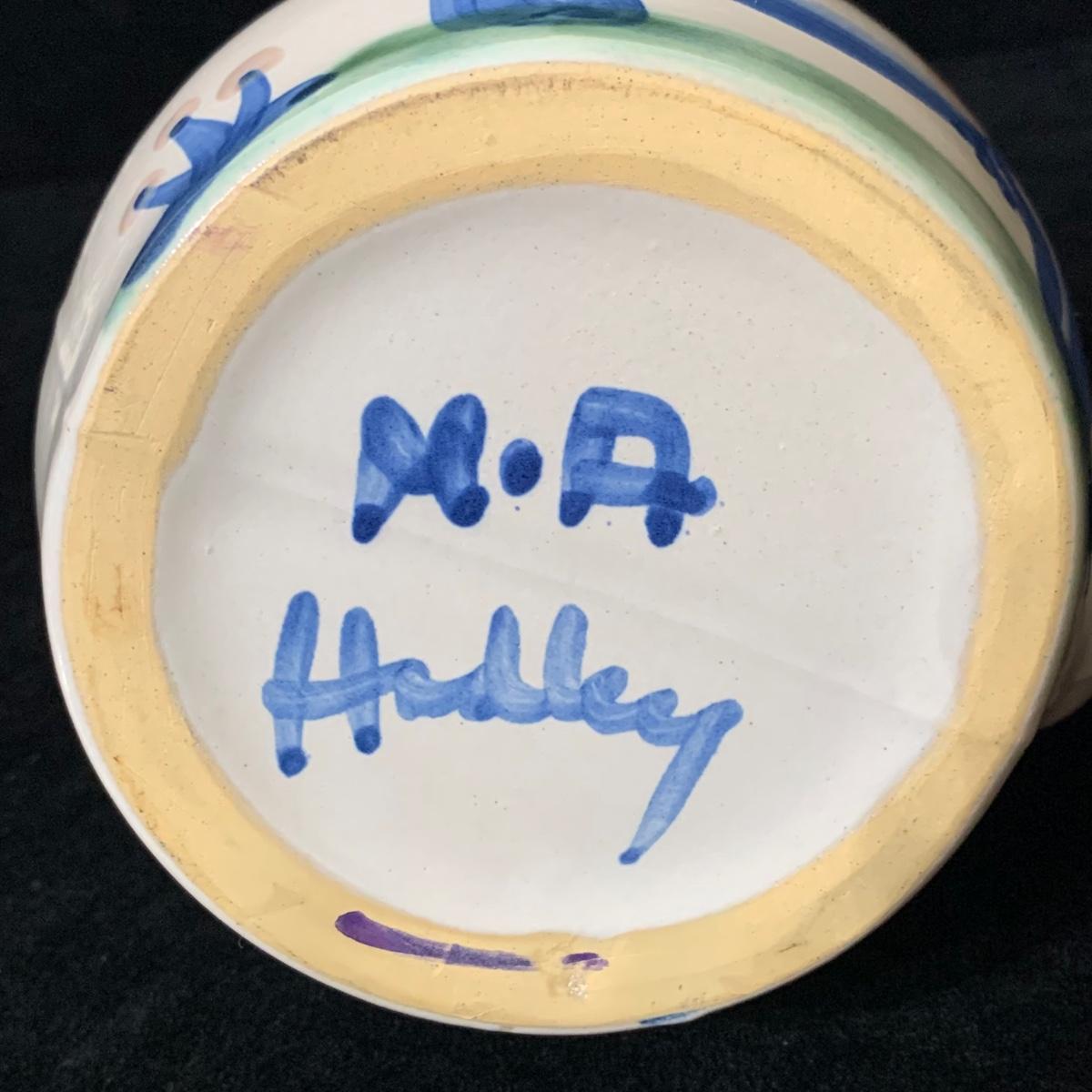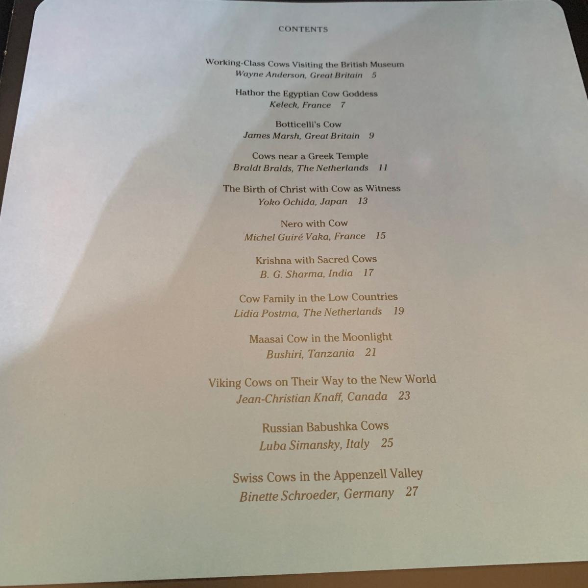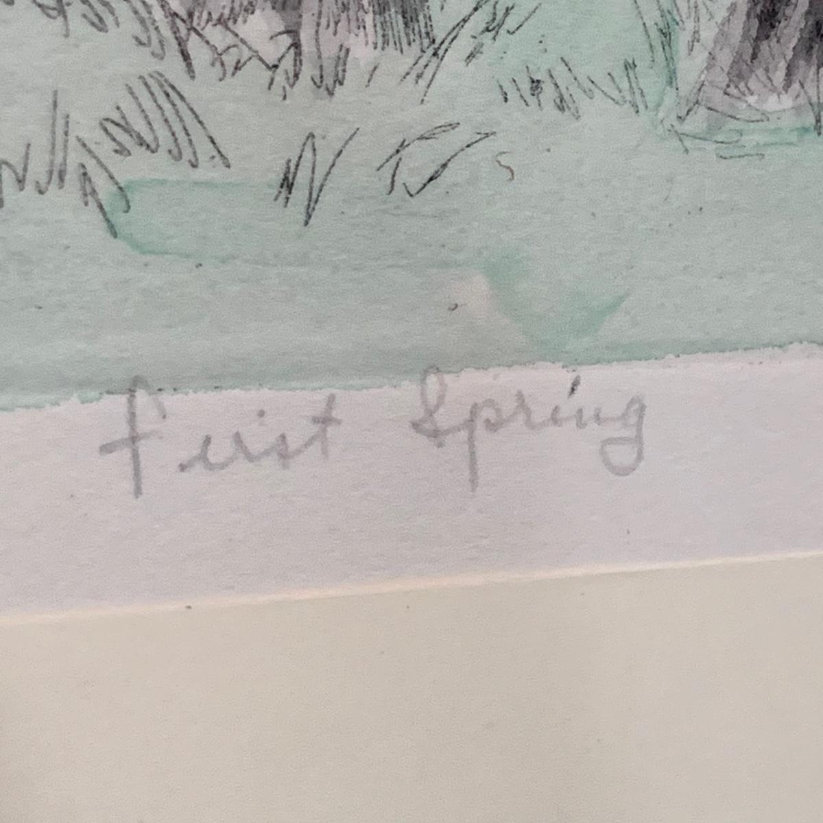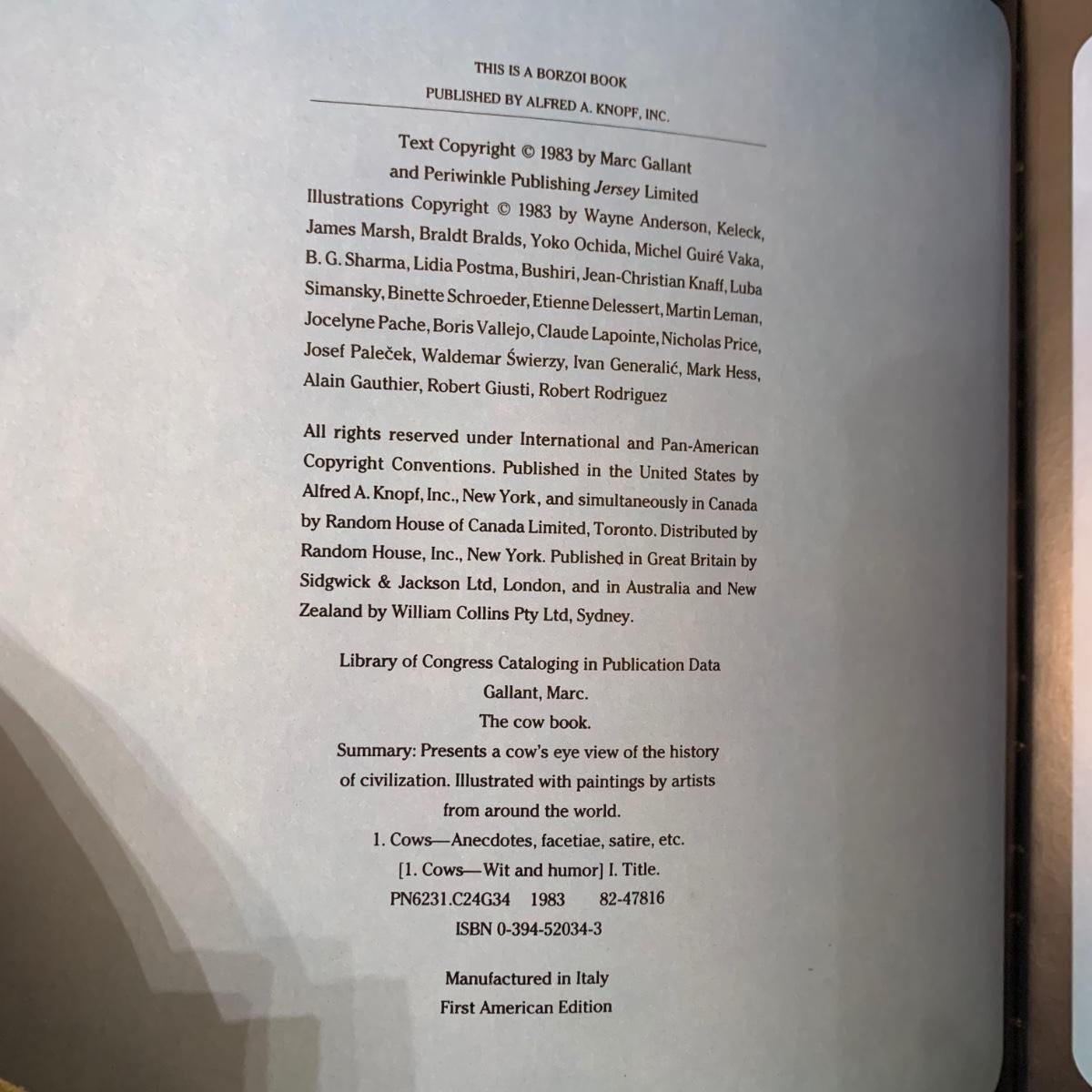 Eleven fun cow related kitchen items, art, & decor. Included is a framed pencil signed and numbered (61/300) print titled “First Spring” by Barbara Gettier. Wood frame measures 13.75” x 17.75”. Also included is a hardcover copy of “The Cow Book” by Marc Gallant, as well as two ceramic pitchers (one by M A Hadley), two mugs, a piece of wall hanging decor, three cow glasses, and a small Delft hand-painted cow figurine. All items are in good condition minus the Delft cow whose tail is broken and the cover & dust jacket of the book have some stains (not visible on the outside). A few items are dusty and just need to be cleaned.