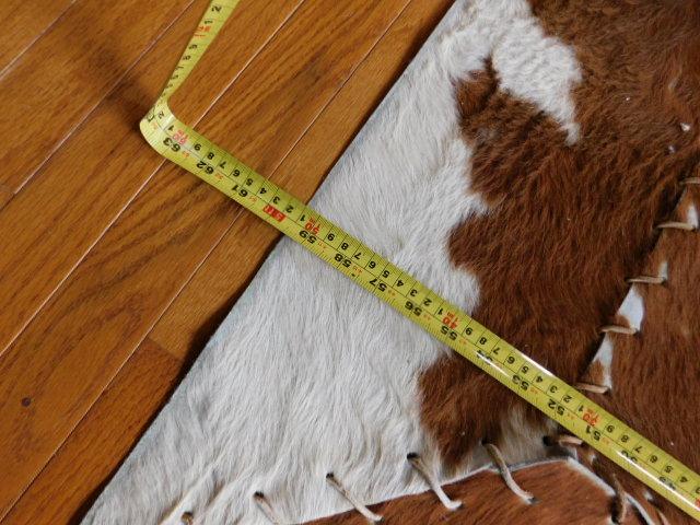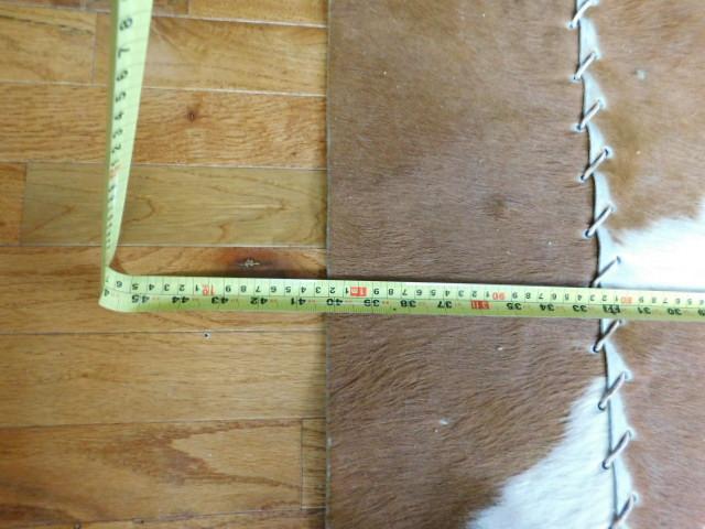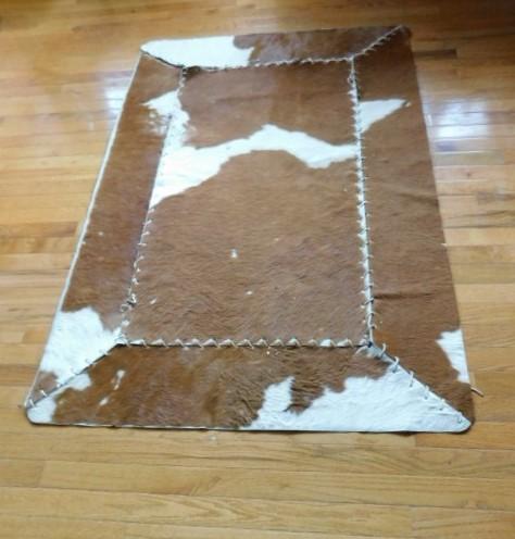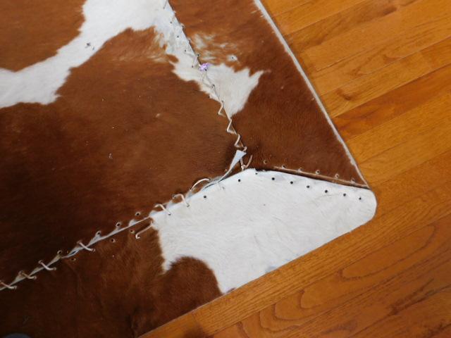 Cow Hide Rug with Leather Stitiching 60"x40" has some stitching loose on one corner