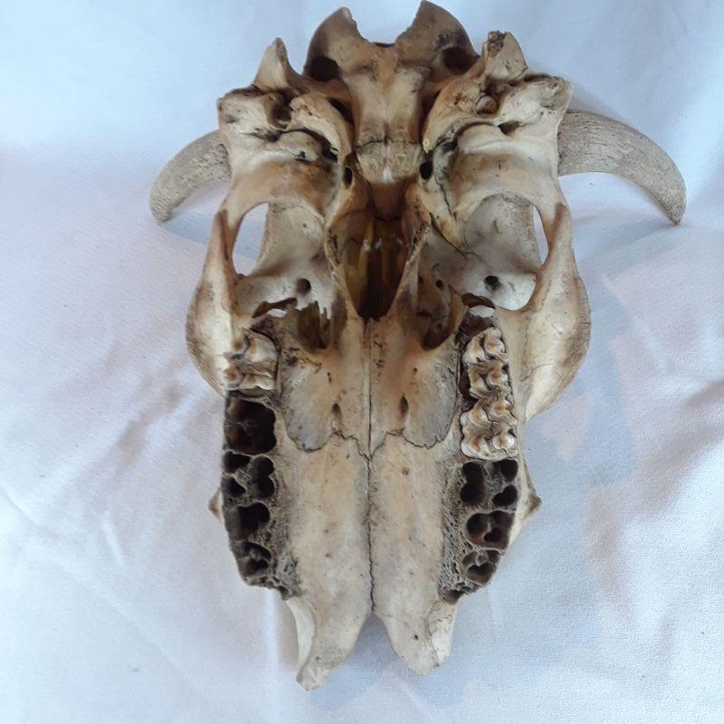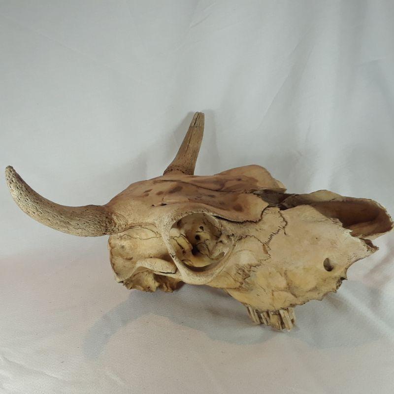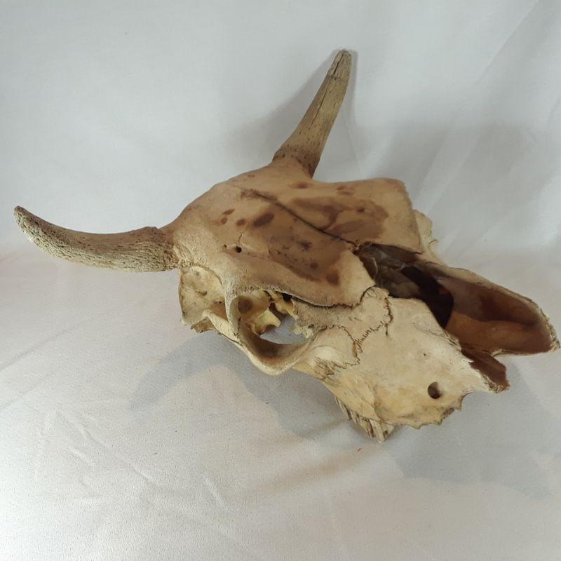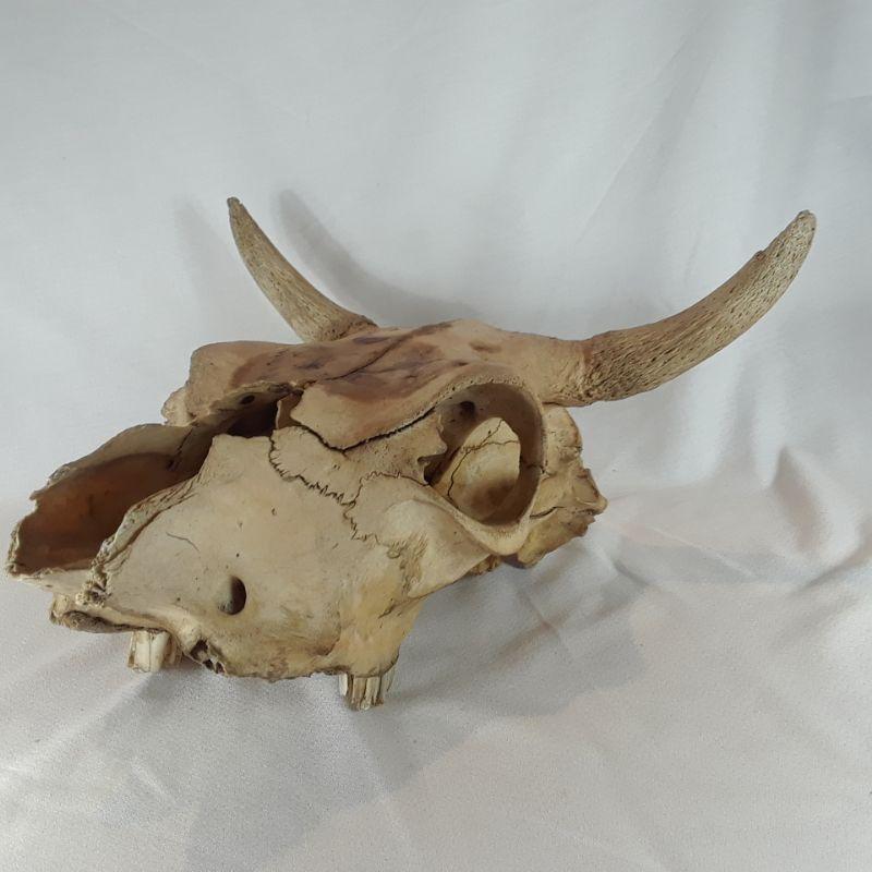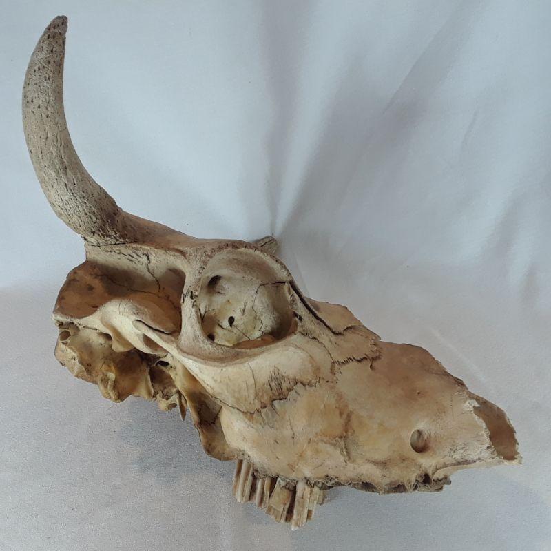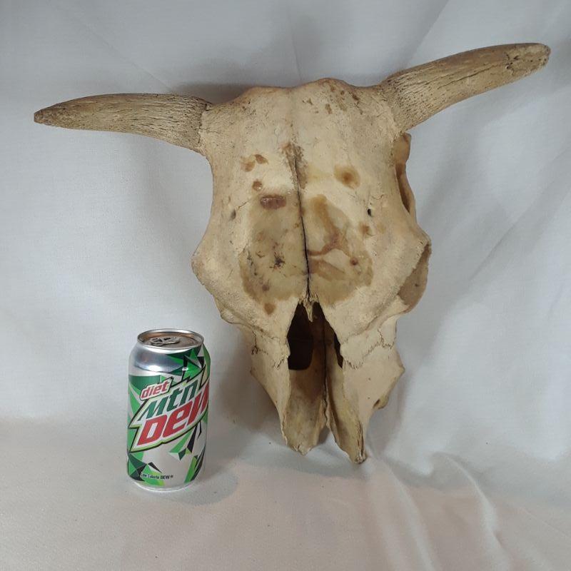 What can we say, it's a cow's skull. Still has some teeth. Size is 14-Inches tall X 15-inches wide - horn tip to tip. Could make for an interesting display for Indian Jewelry, can use in garden or many other possibilities you might imagination. We just thought it was cool and thought we would give you a chance to own it.