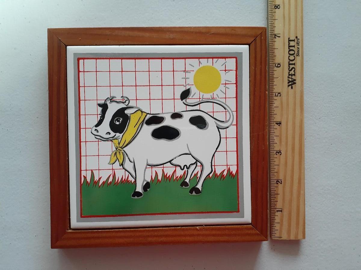 Cow Tile in wood frame