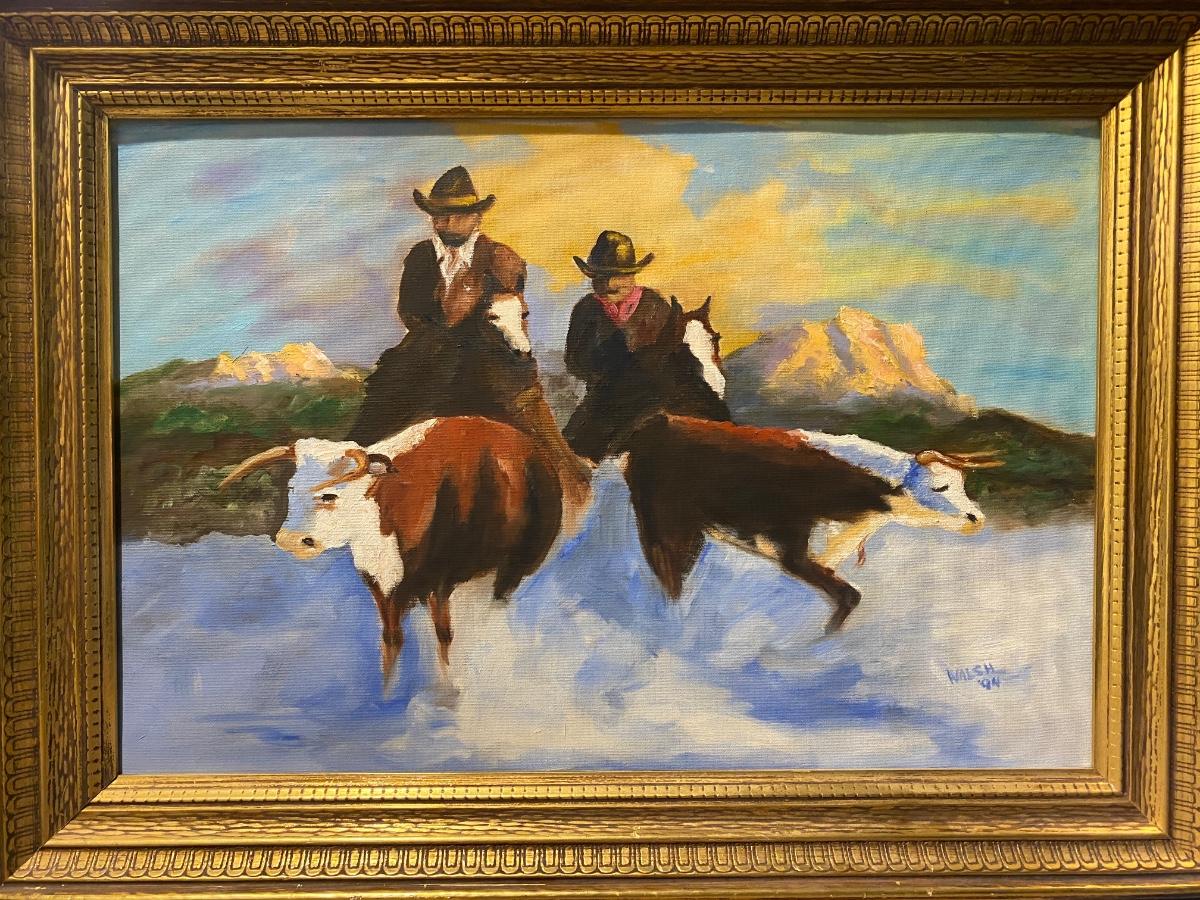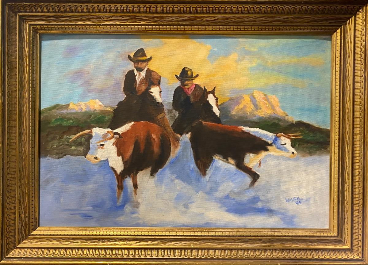 1994 Oil on Canvas, Cowboy Art by Dorothy Walsh - 28.5" W x 20.5" T. Signed and Framed